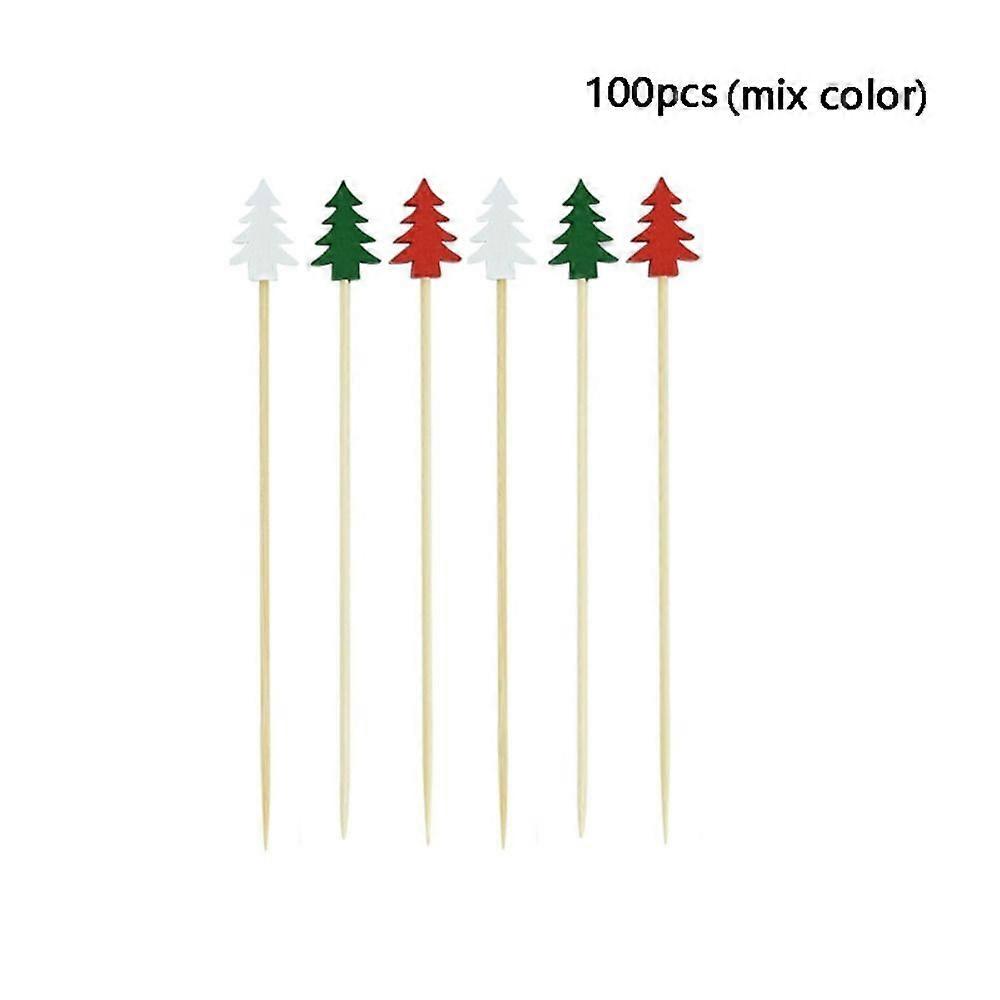 100Pcs Christmas Fruit Sticks Disposable Christmas Tree Elk Santa Bamboo Sticks