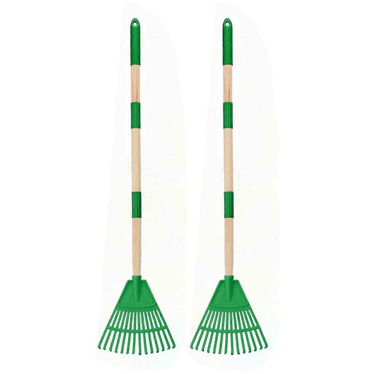 2 Pcs Kids Rakes with Wood Handle - 34inch Light Plastic Garden Rake