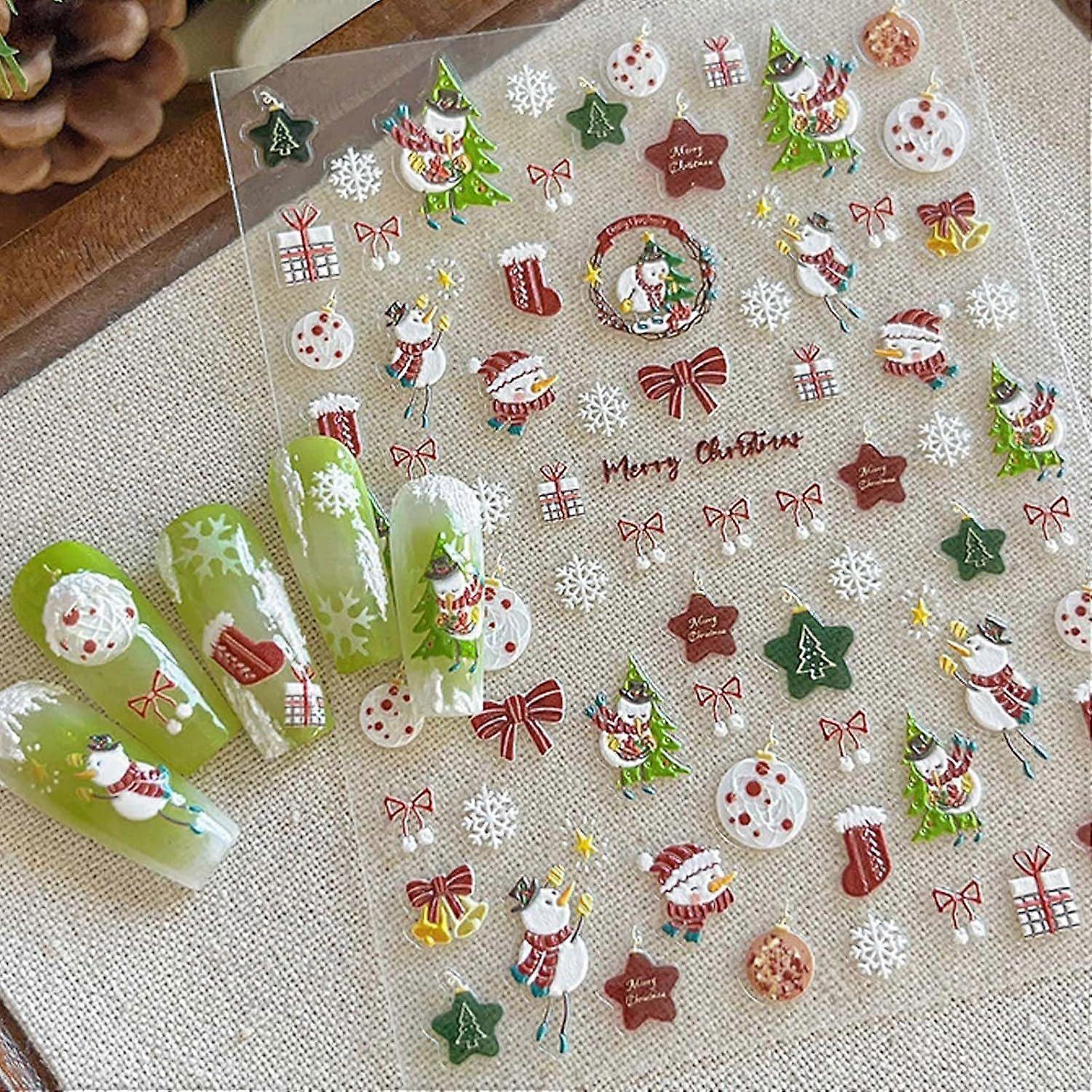 Christmas Nail Art Stickers Decals Christmas Crystal Ball Nail Stickers Winter Christmas Tree Christmas Red Bow Bell Design 5D Embossed Nail Decals Ma