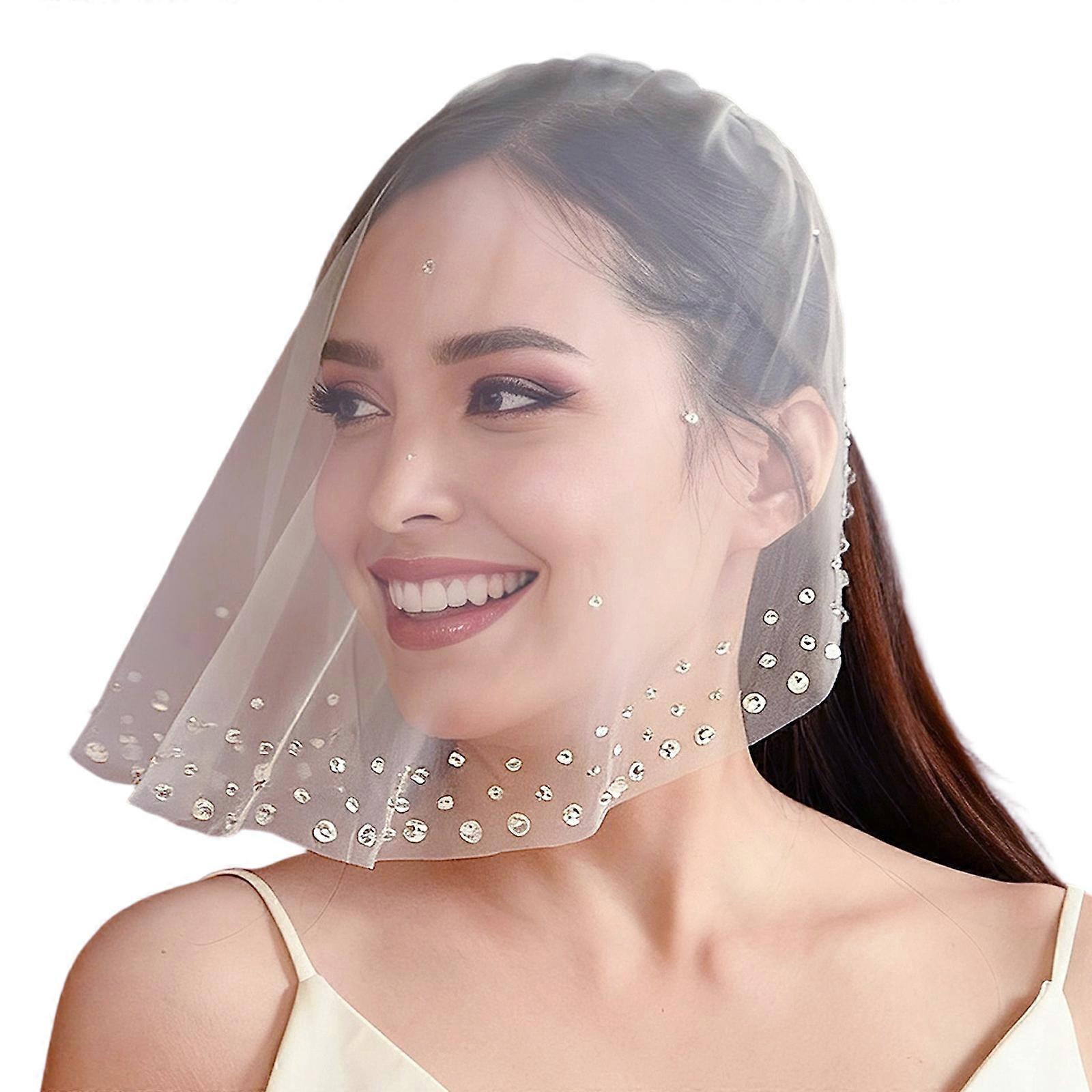Elegant Single Layer Wedding Veil With Sparkling Rhinestones Studds For Bride Ceremony Tulle Face Veil for Special Event White