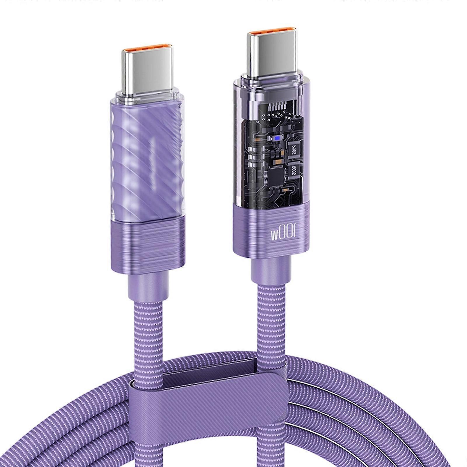 Auto Shutoff 100W USB C to USB C Cable Fast Charge Cable Clear Exterior Aluminum PVC Construction Purple 2m