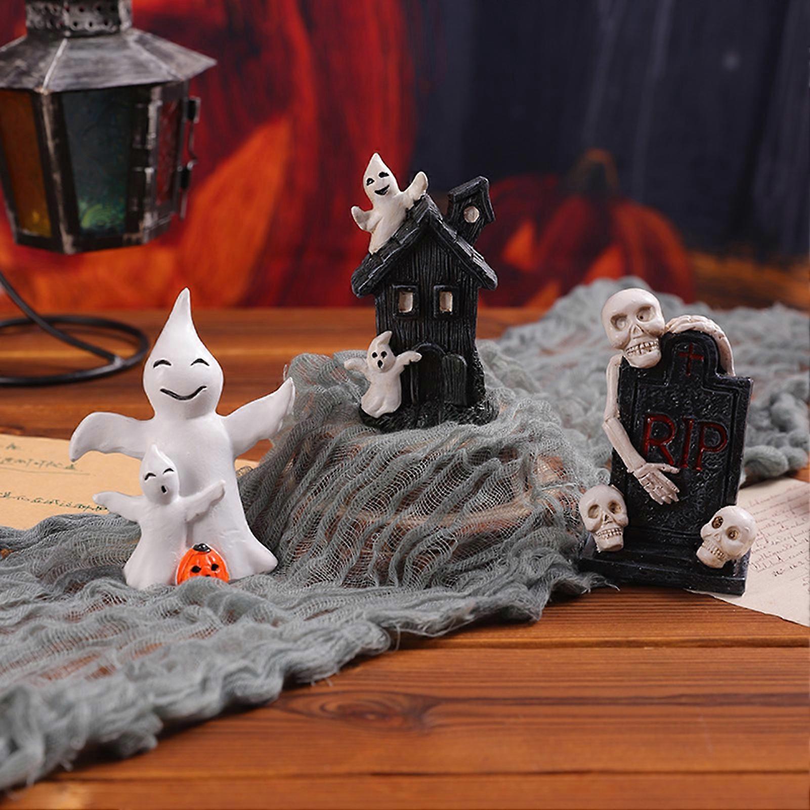 SUSUchens Halloween Ghost Decoration Resin Pumpkin Skeleton Tombstone Ornament Spooky Home Desktop Figurine for Halloween Party Decor Style C