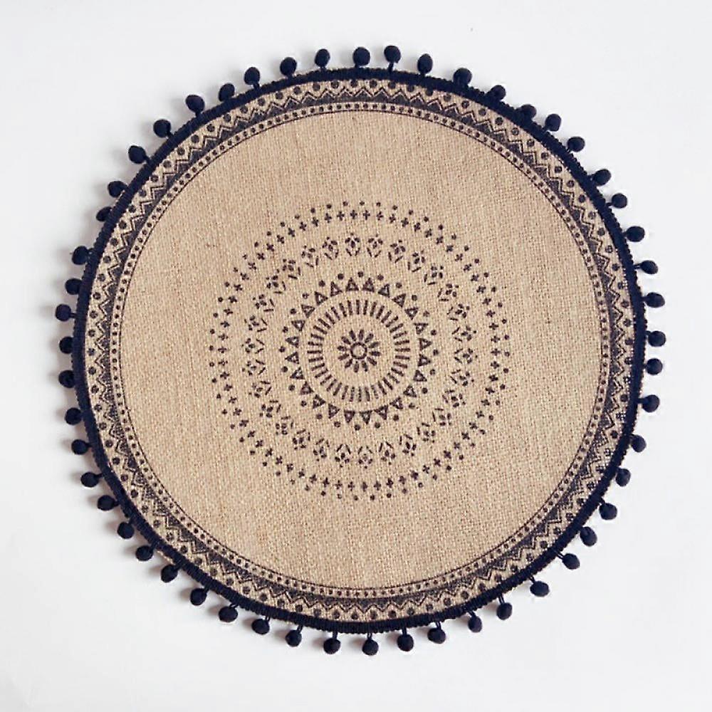 Boho Placemats Set of 4, 15" Mandala Round Woven Placemats with Pompom Ball, Neutral Rustic Tablemats for Dining, Christmas, Home Decor