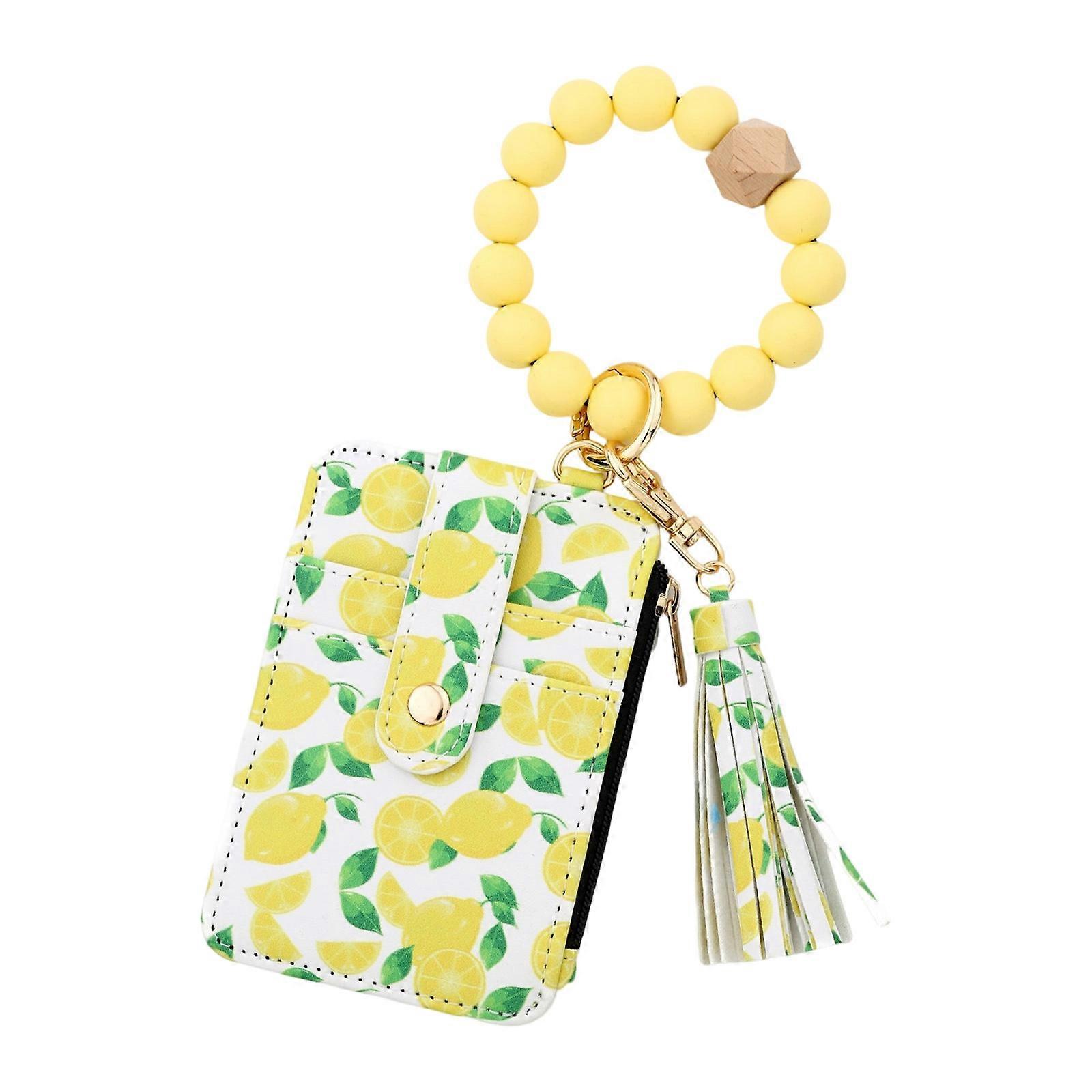 Wristlet Keychain Wallet Credit Card Holder Keyring Keychain Thin Purse Bangle Tassels Key Rings for Women Girls Gift Multicolor