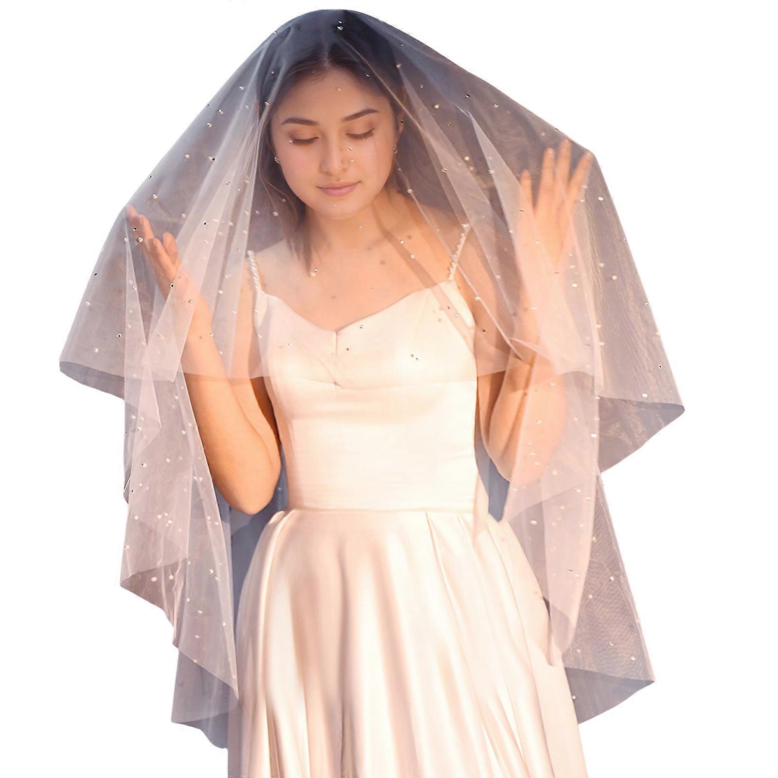 Delicate Crystal Beadwork Wedding Veils Tulle Bride Veils For Wedding Ceremony Special Occasion Engagement Headwear White