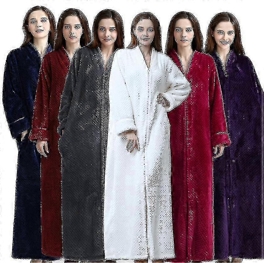 Zipper Bathrobe For Womens Flannel Fleece Robes Winter Warm Housecoat Nightgowns