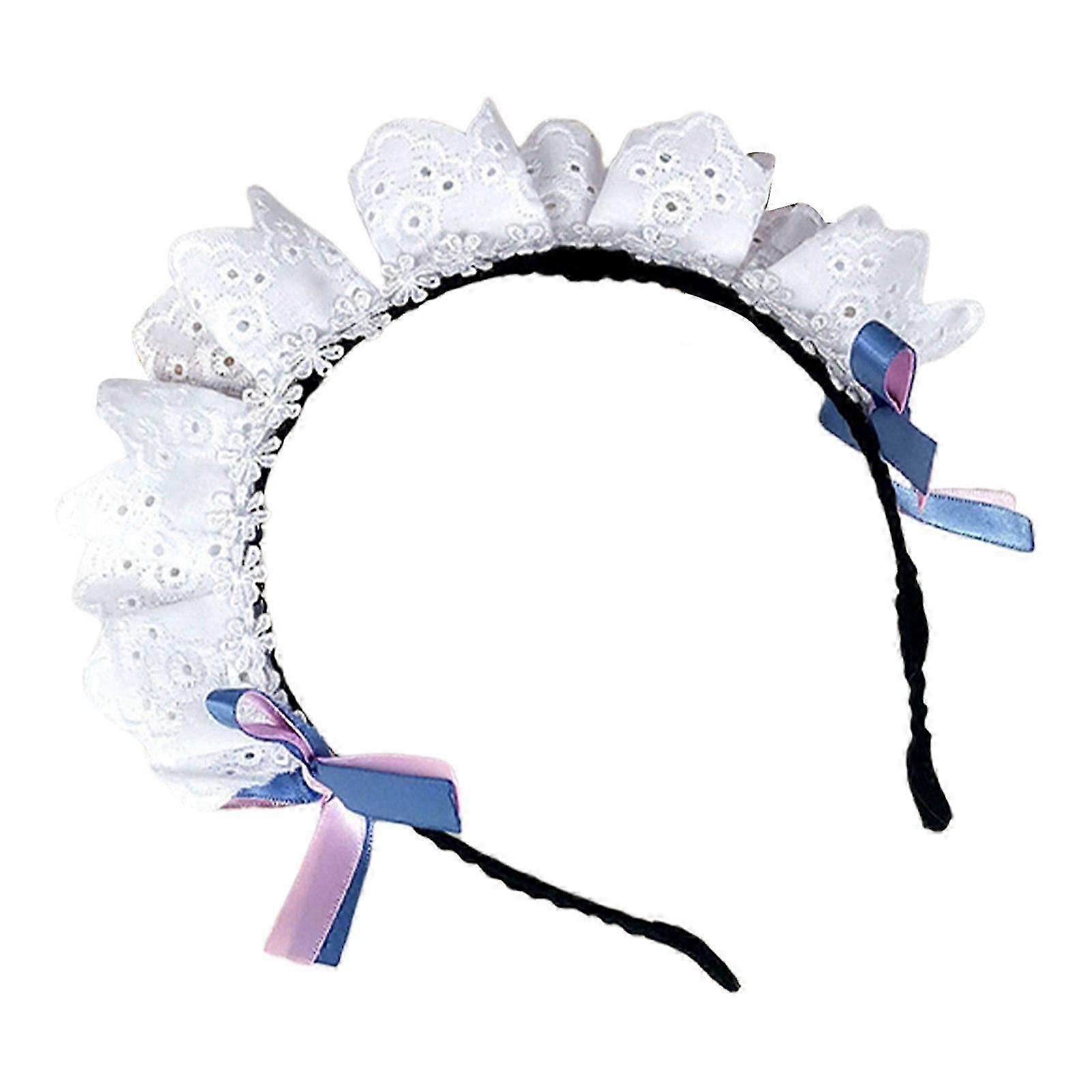 Lace Bows Hair Band Maid Anime Role Playing Headwear Ribbon Bowknot Headbands for Casual or Costume Weaa