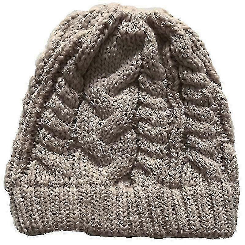 Womens Knitted Stretch Beanie Messy High Bun Winter Warm Ponytail Beanie Hat Capsa