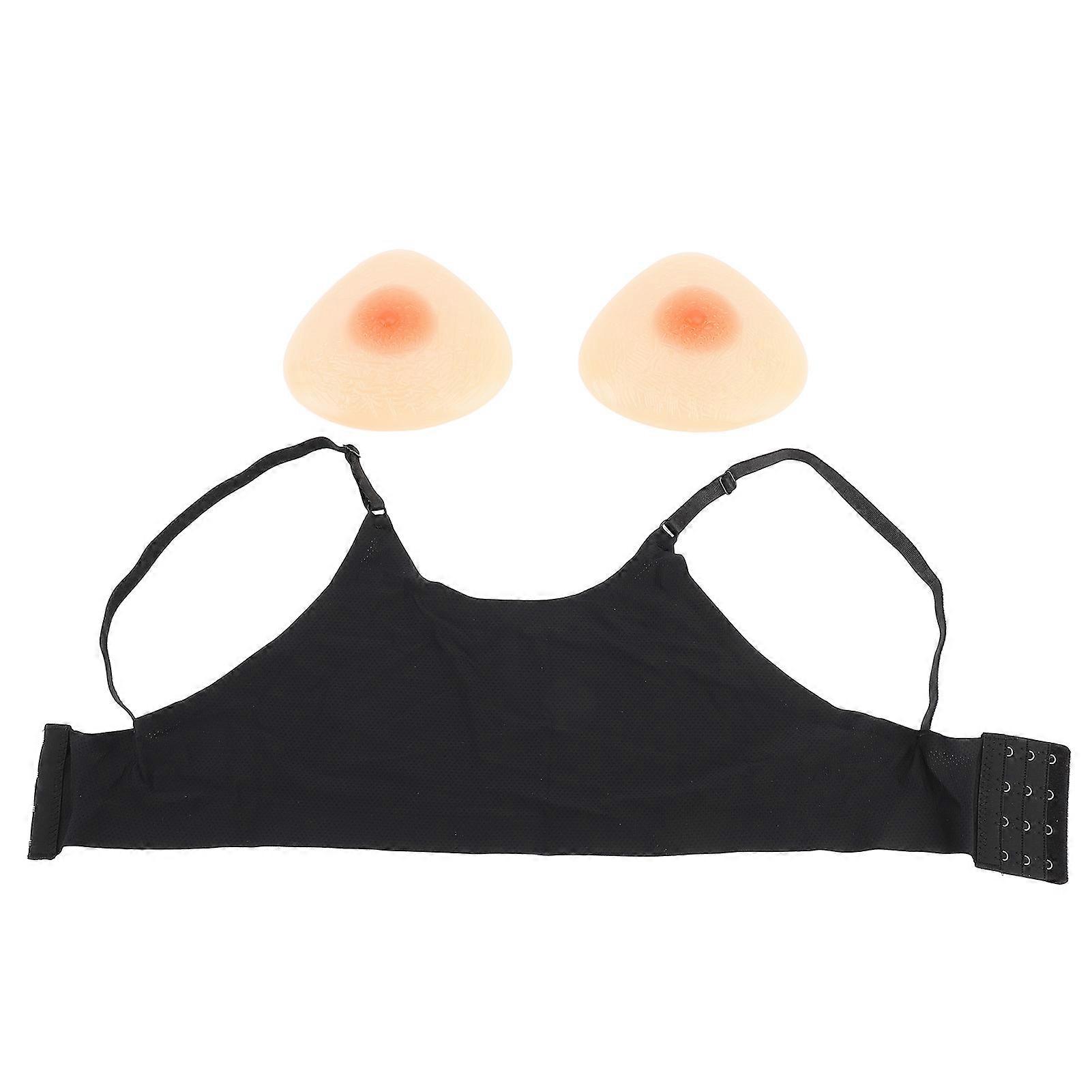 1 Pair Silicone Forms Triangular Shape Ultra Soft Adjustable Strap Black Bra Prosthetic Boobs for Mastectomy Crossdressers