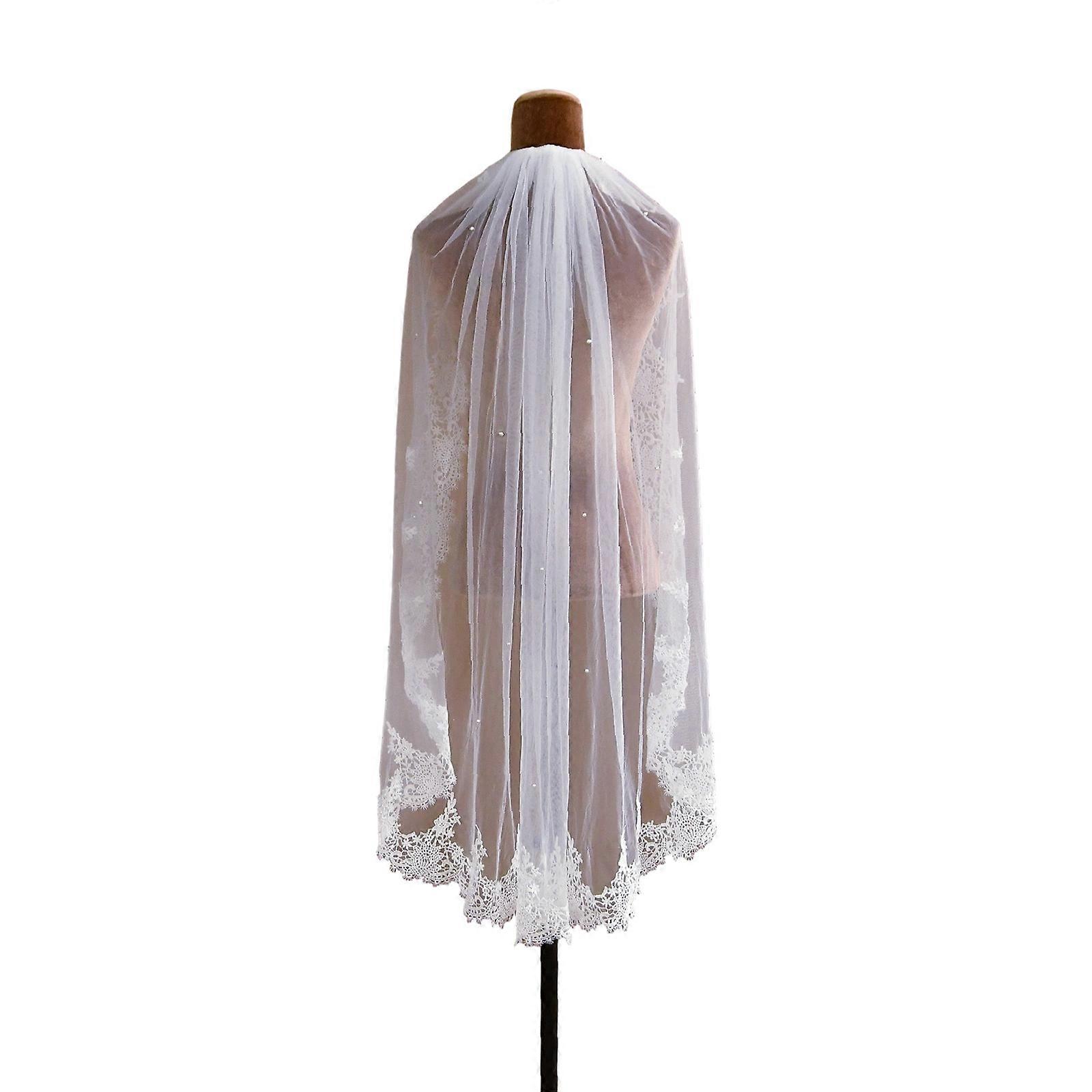 Elegant Bridal Veils With Secure Hair Comb French Styles Lace Flower Trim Tulle Head Veils For Wedding Ceremony Dressingup White