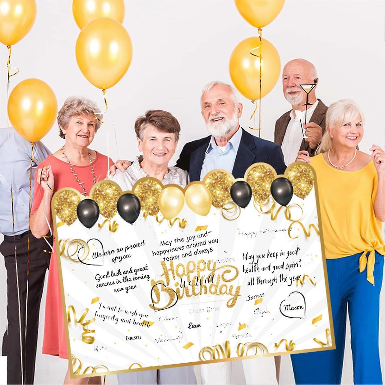 SUSUchens Birthday Name Book Black Golden Themed Letter Print Happy Birthday Guest Book Birthday Decoration Party Supplies Black Golden