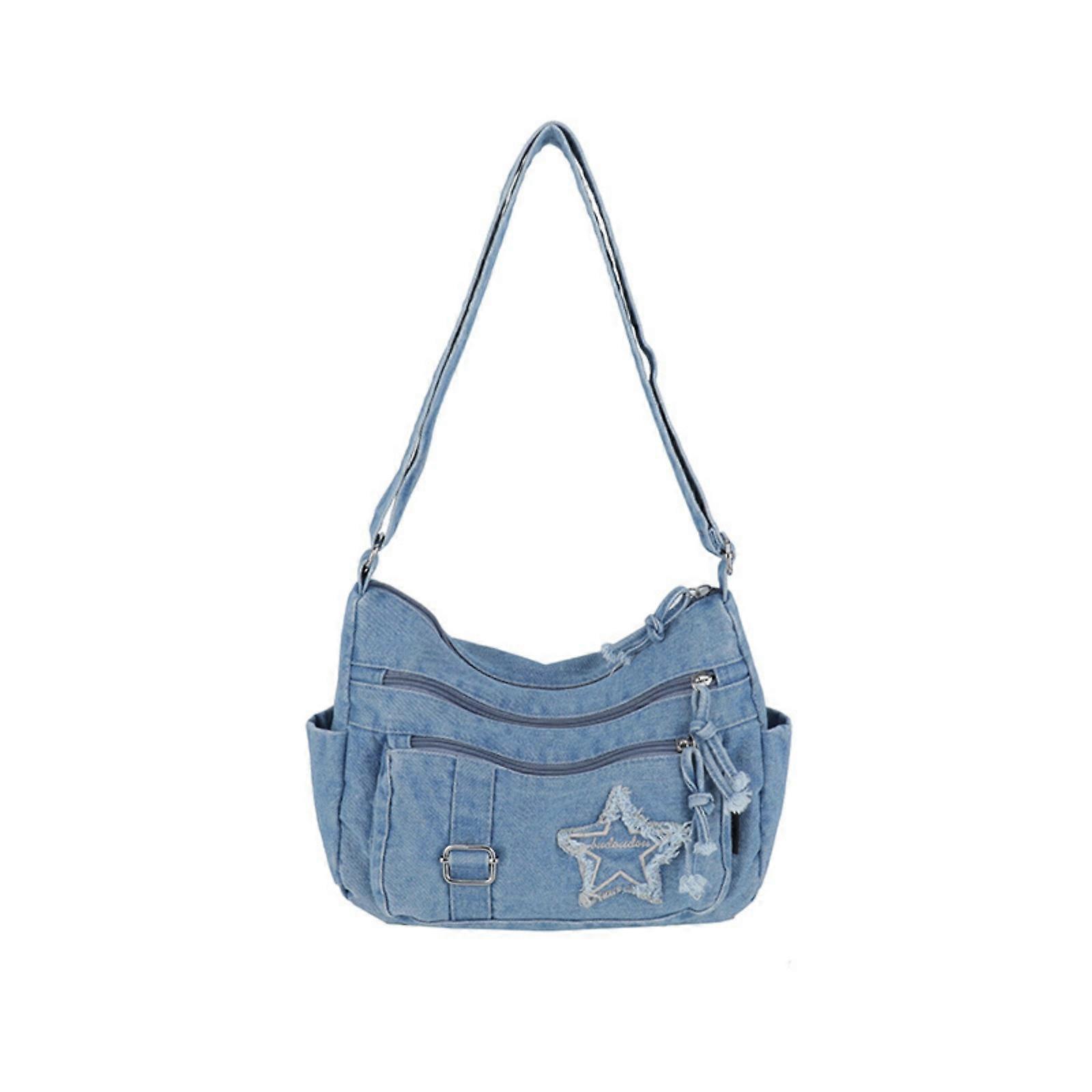 Jean Shoulder Bag for Women Denims Shoulder Purses Handbag Hoboes Bags Trendy Crossbody Purse with Adjustable Strap light blue