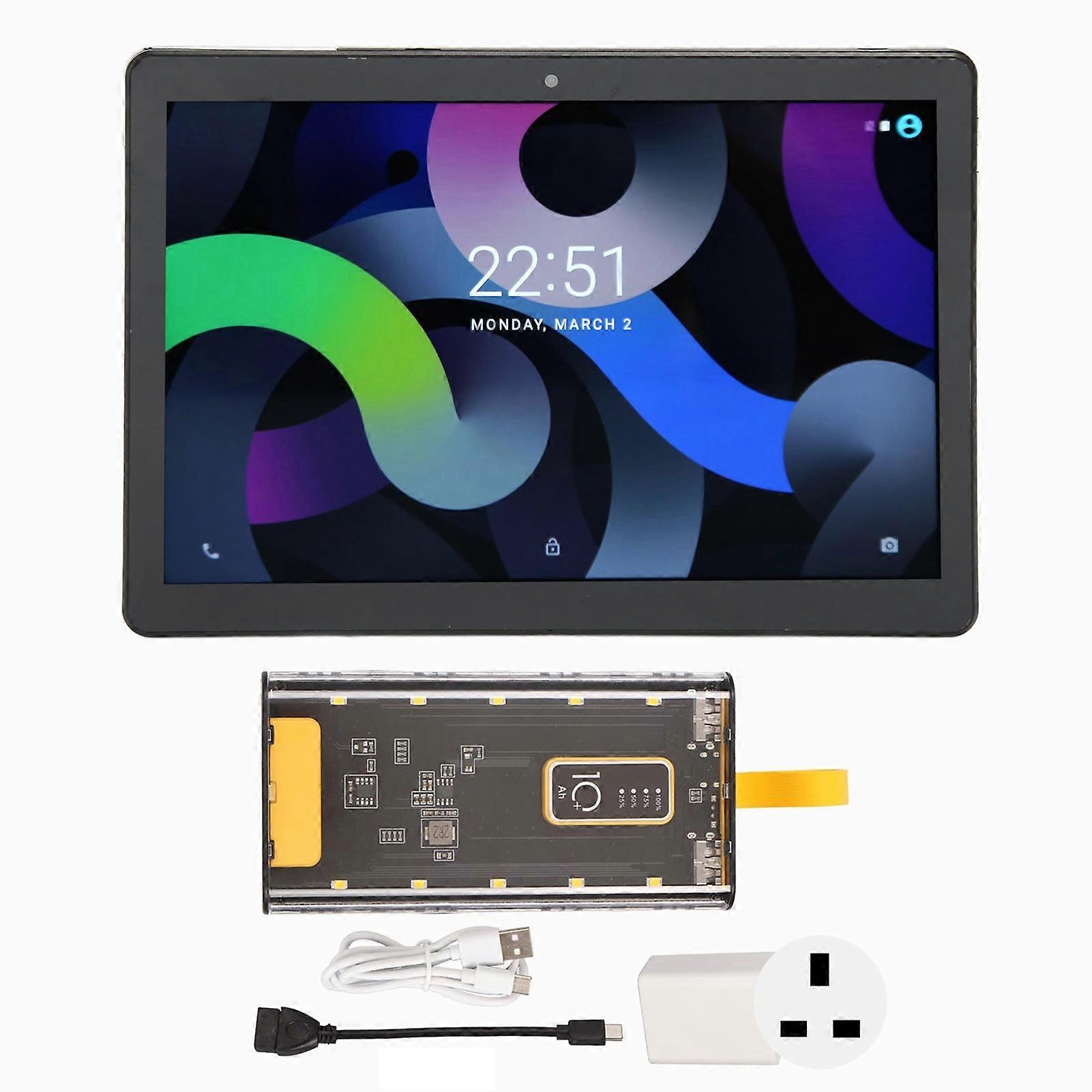 10.1 Inch Tablet 4GB RAM 64GB ROM Octa Core 5G WiFi Dual Camera 8800mAh Black UK Plug