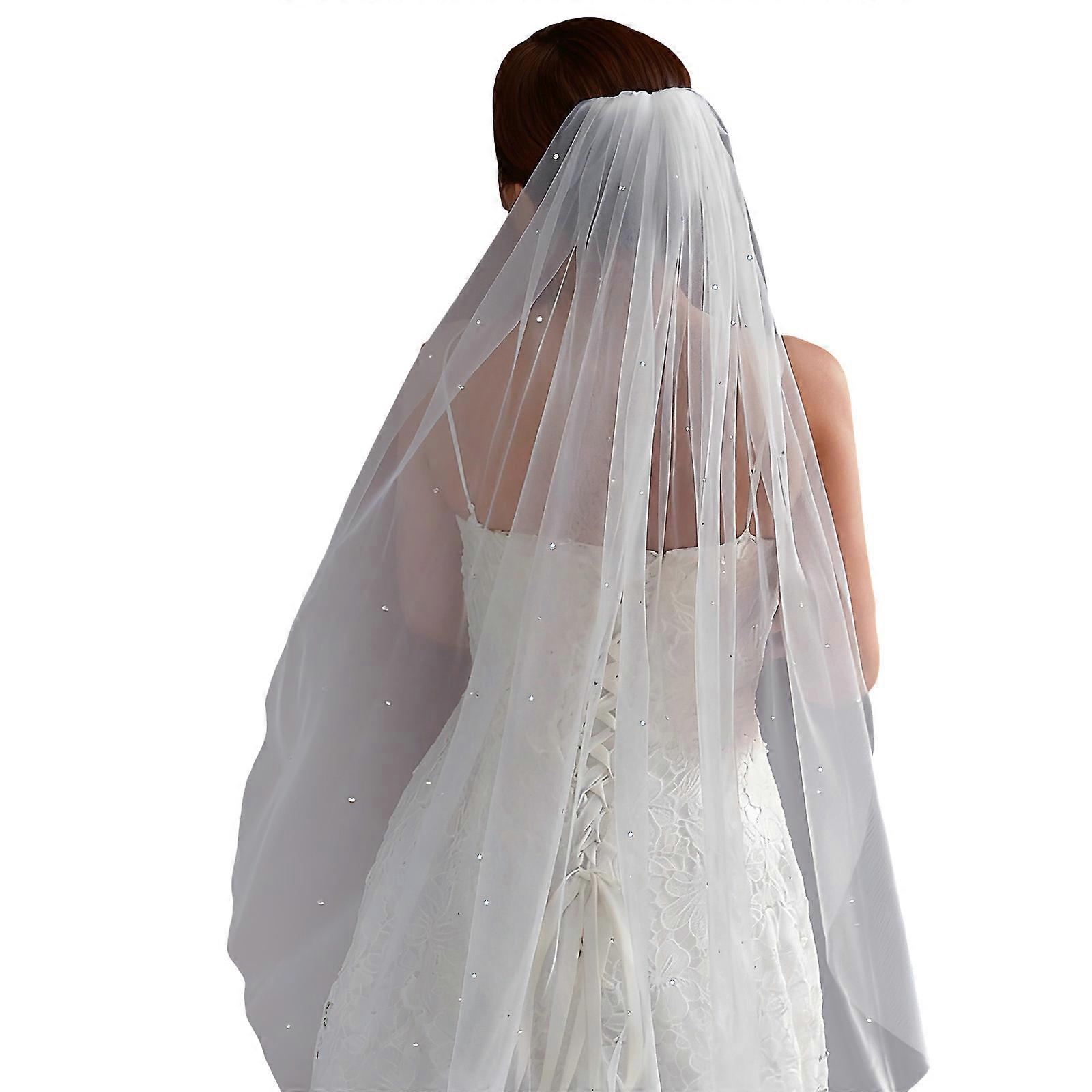 Sheer Bridal Hair Veils With Sparkling Crystal Rhinestones And Secure Hair Comb For Outdoor Wedding Ceremony Dressingup White