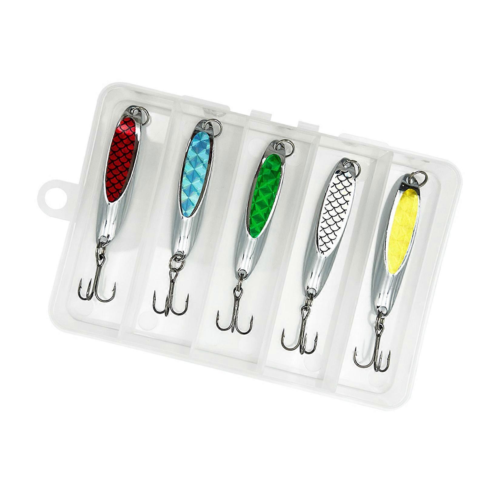 5Pcs Spoon Metal Hard Spinner Baits Fish Lures Spinner Swimbaits Colorful Sequins Lures Baits Treble Hook Fishhooks Set Multicolor