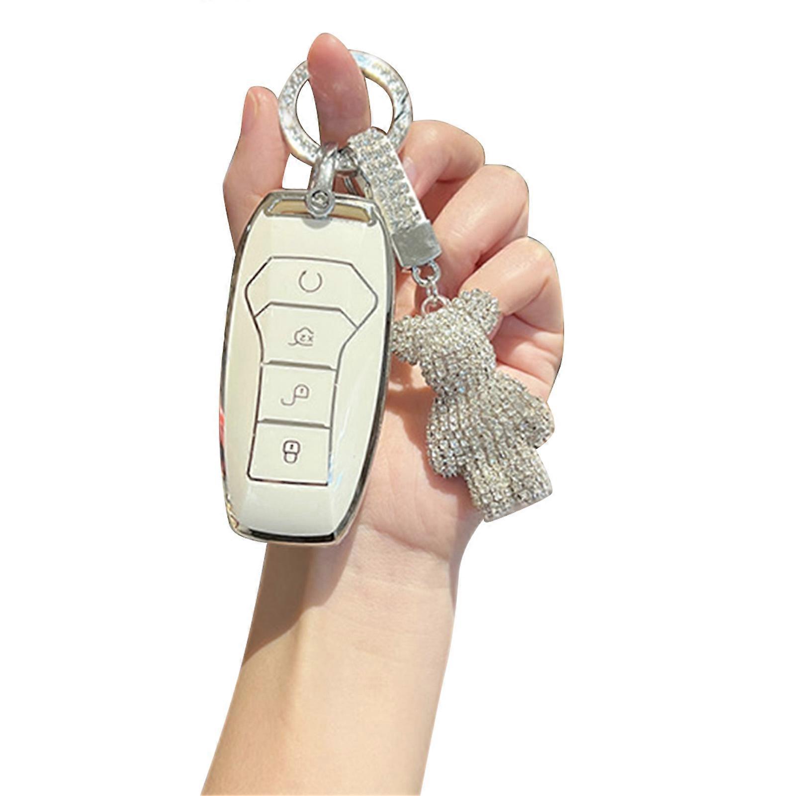 Car Key Case TPU with Diamond Bear Decor Keychain Compact Replacement for Byd Han Song Plus