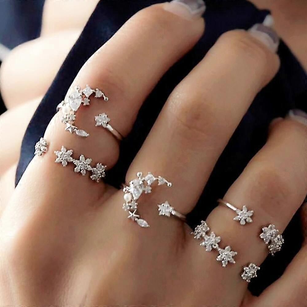 Up to 50% off Women Rings Set of 5Pieces Rings Set New Bohemian Vintage Women Alloy Star Moon Shape Finger Rings Punk for Valentine's Day