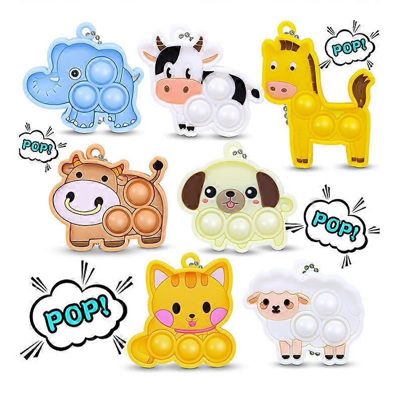 10/40Pcs Cartoon Animal Pop Keychain Hanging Stress Relief Toys Kids Birthday Party Favors Guests Gift Goodie Bag Pinata Filler