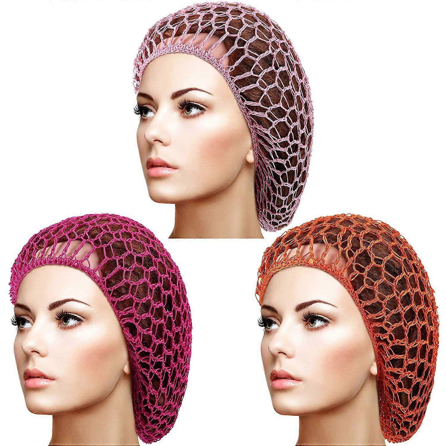 3PCS Crochet Hair Net Head Cover for Women - Elastic Sleep Cap Compatible with Curly & Long Hair, Plopping Wrap