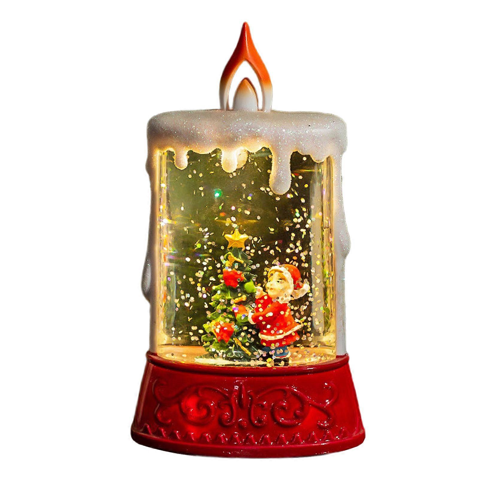 Portable Snow Globe LED Table Night Light Candle Shape Swirling Glitter Christmas Lamp Decoration For Christmas Party Multicolor
