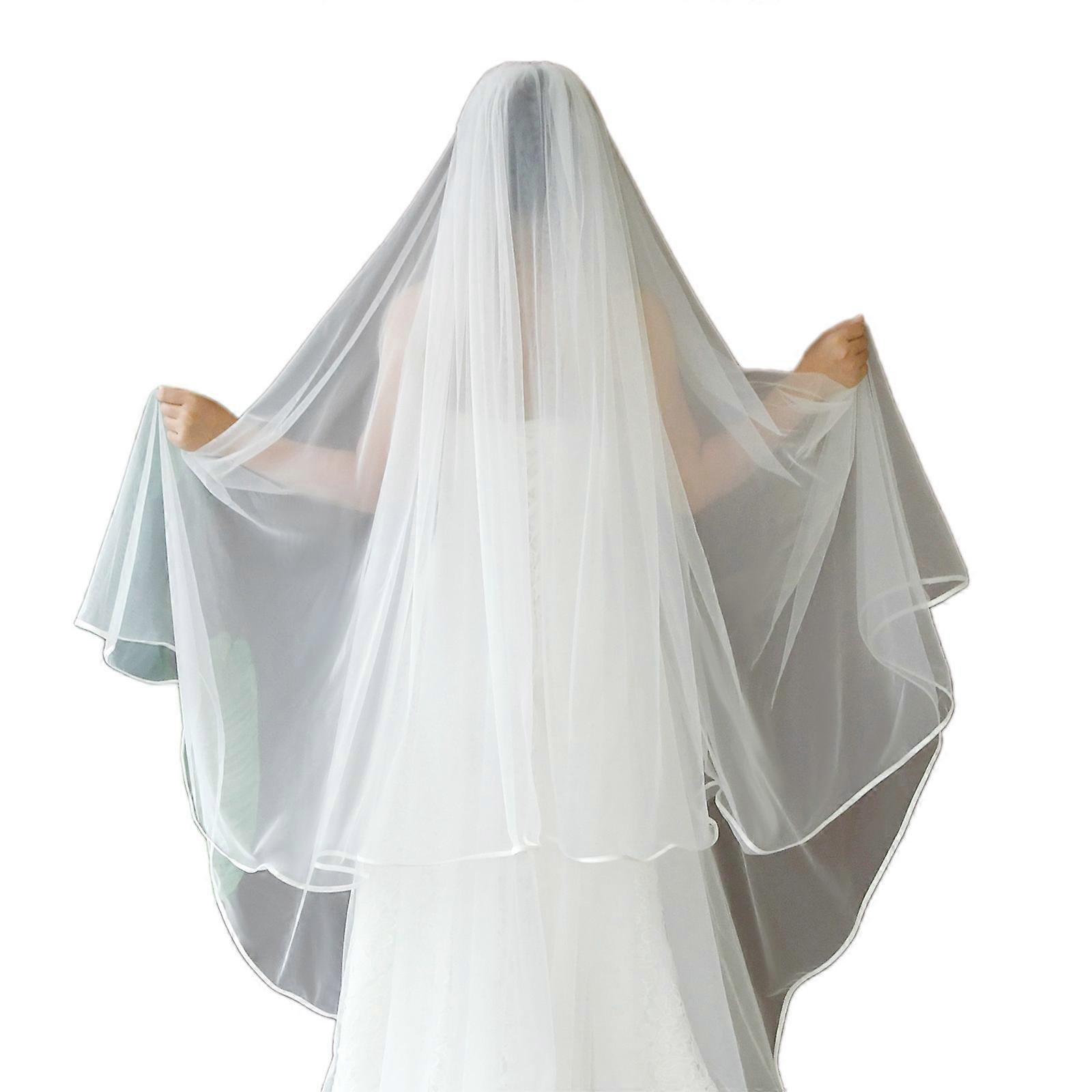Formal Wedding Headpiece With Extended Train Classical White Color Light Sheer Fabric Elegant Loop Decoration White