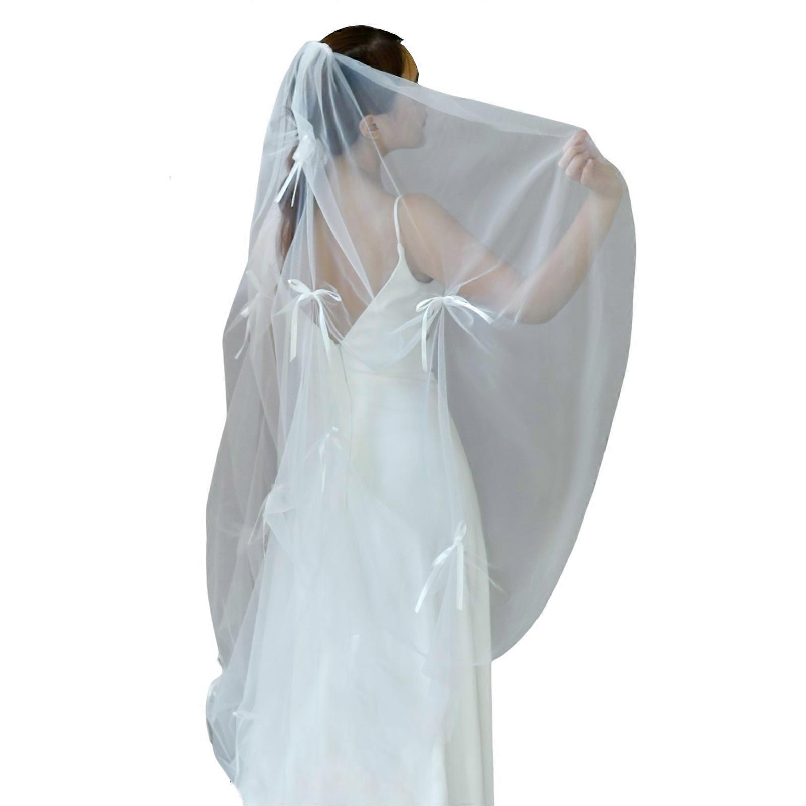 Simple Single Layer Bridal Cover Airy Sheer Hair Accessory For Wedding Ribbon Adorned Headpiece Classic Design White