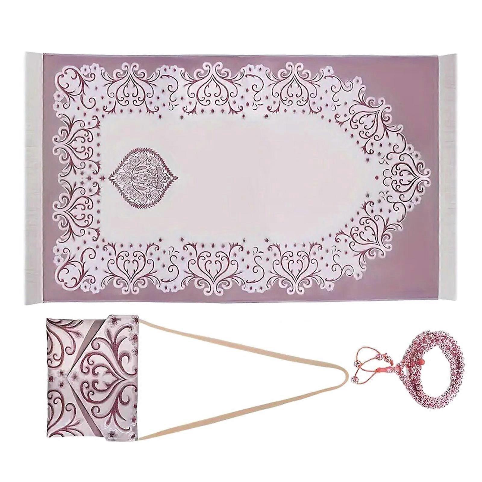 Muslims Prayer Rug Set with Prayer Beads and Bag Elegant Ramadans Prayer Mat with Islamic Prints Holiday Parties Gift Red