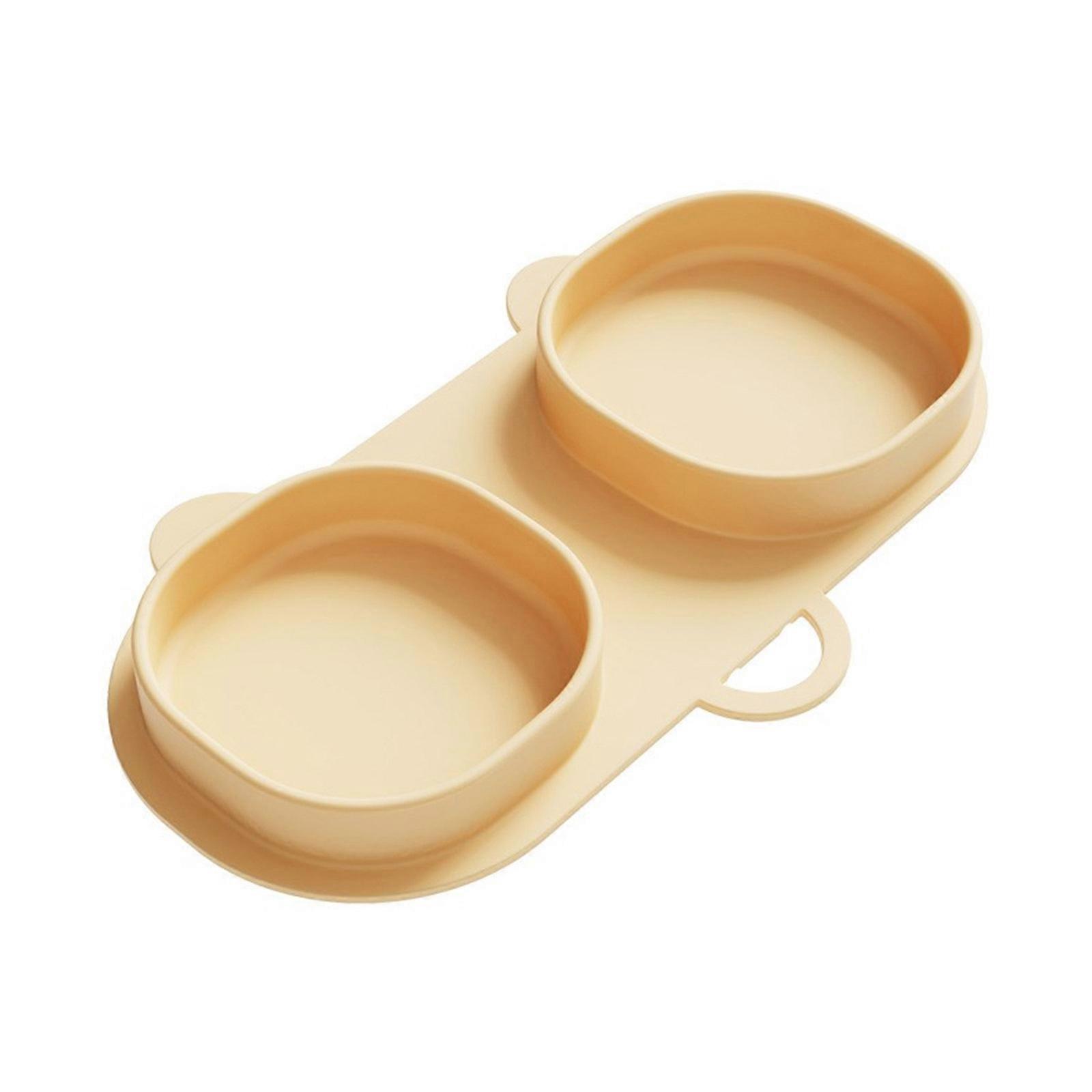 Silicone Infant Feeding Plate Collapsible Design Leakproof Base Double Bowl Microwave Safe Dishwasher Safe for Infant Yellow
