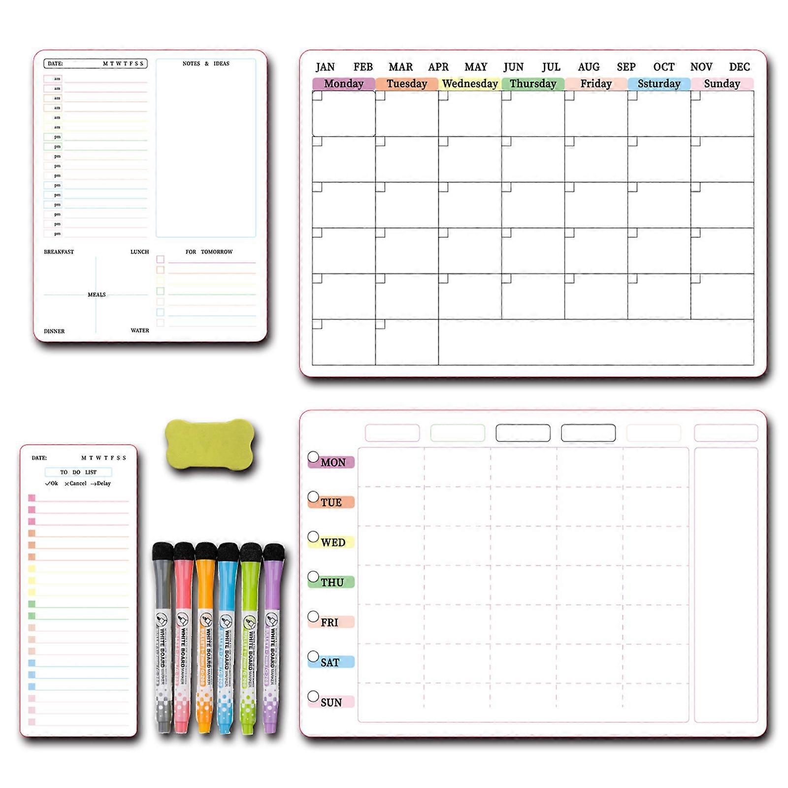 Magnetic Fridge Calendar with Erasable Marker Whiteboard Weekly Monthly Calendar Whiteboard for Kitchen Fridge Reminder Multicolor