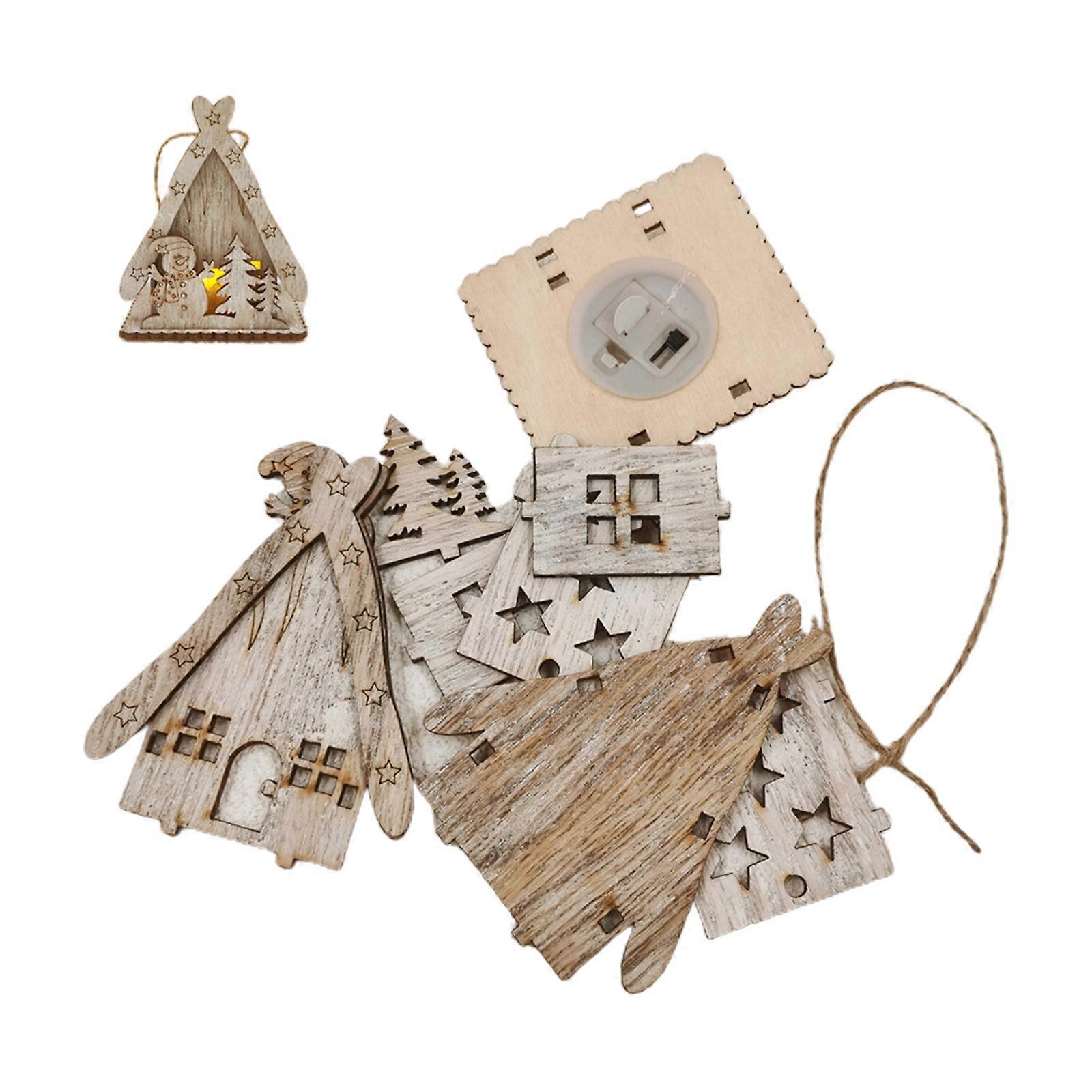 Christmas DIY Wooden Lighted House with Cute Santa Claus Snowman Decoration Luminous Xmas Tree Hanging Pendant Gifts Multicolor