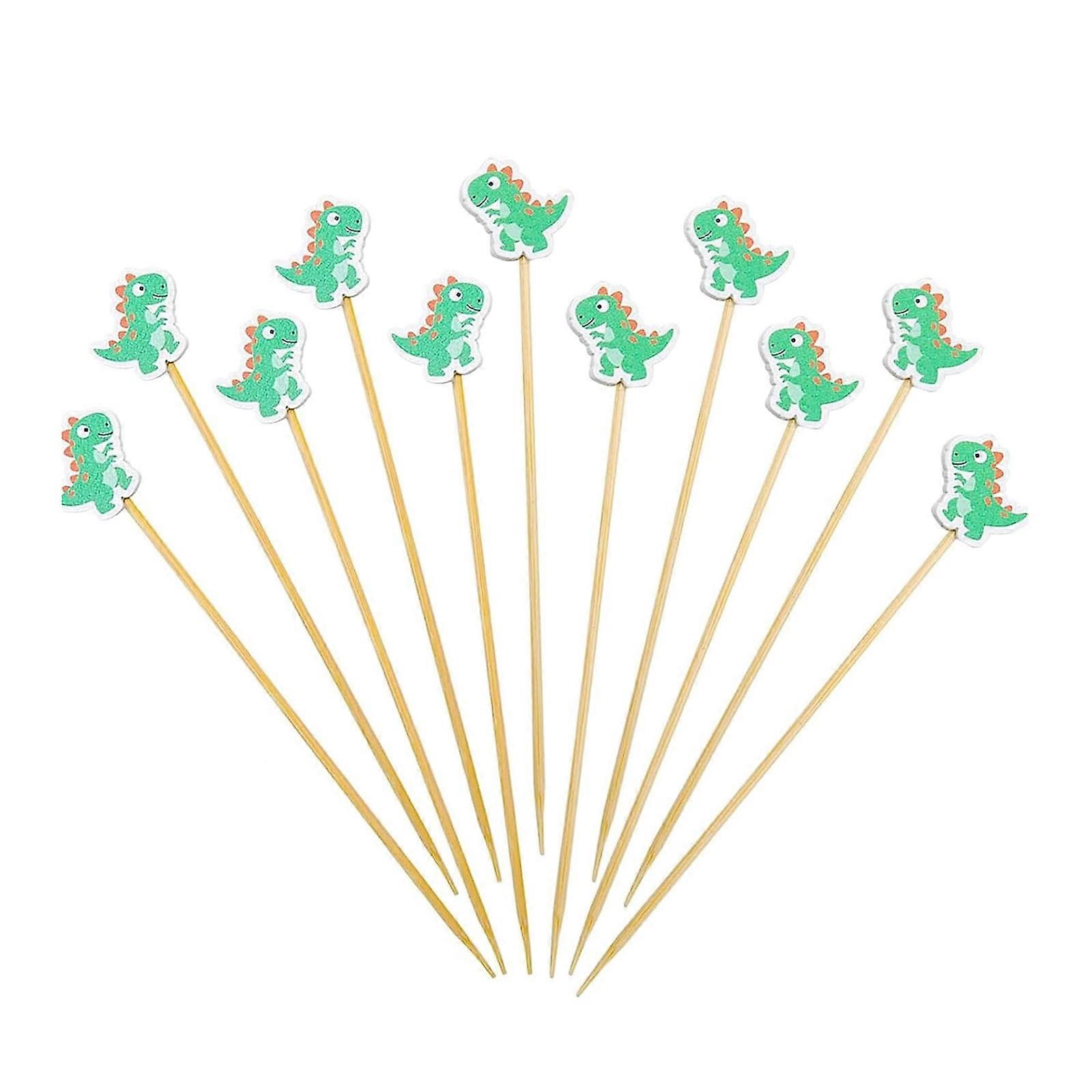 100 Lovely Dinosaur Food Skewers 12cm Wooden Cocktails Sticks Themed Party Supplies for Snacks Decors Multicolor