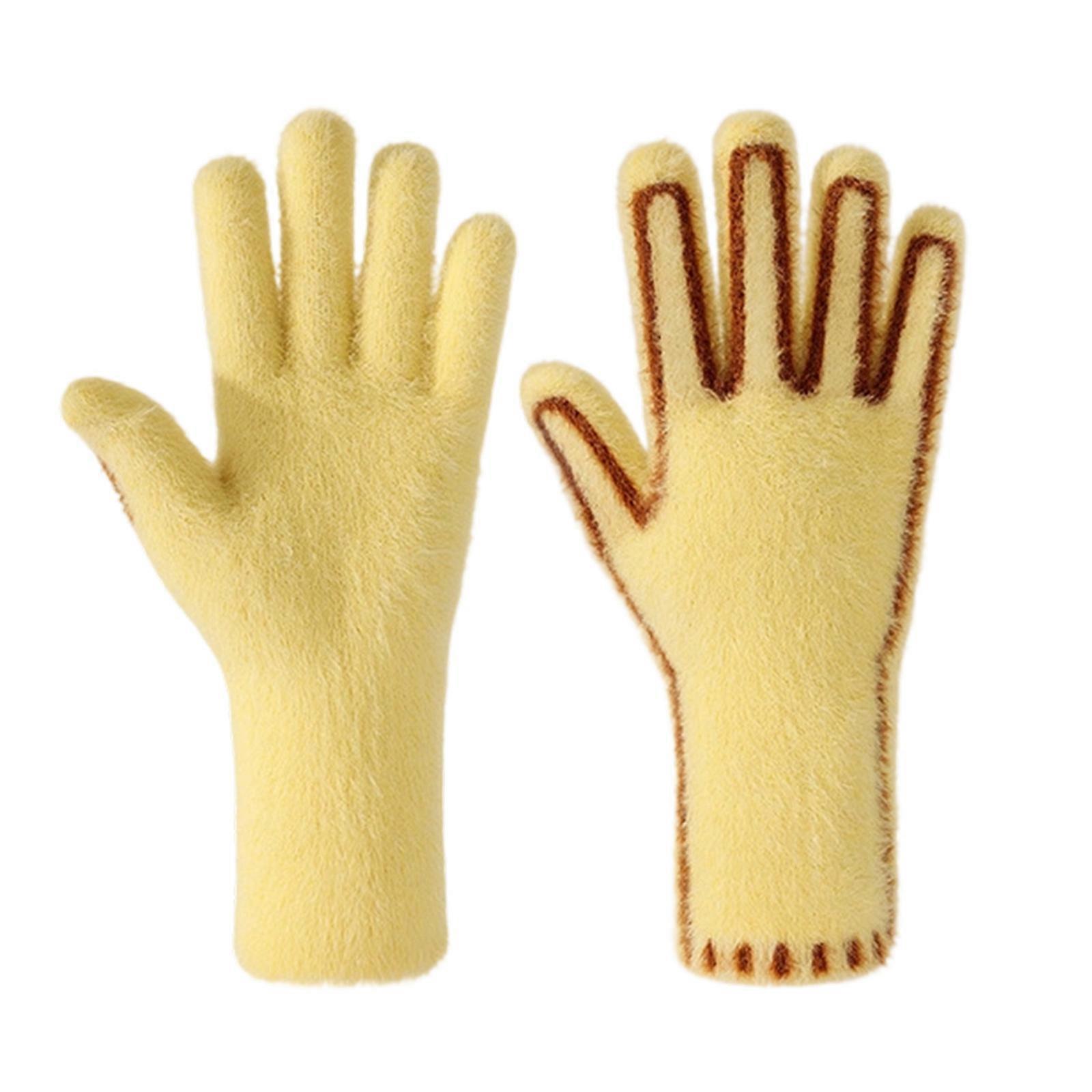 Warm Winter Gloves For Cold Weather Outdoor Activity And Daily Commute With Knitted Faux Mink Like Yarn for Women Girl Yellow