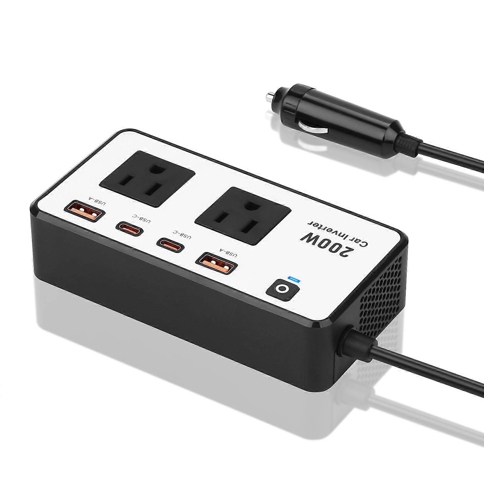 200W Car Power Converter 12V to AC110V with Double Outlets and USB Fast Charge for Travel Essential Outdoor Adventures Multicolor