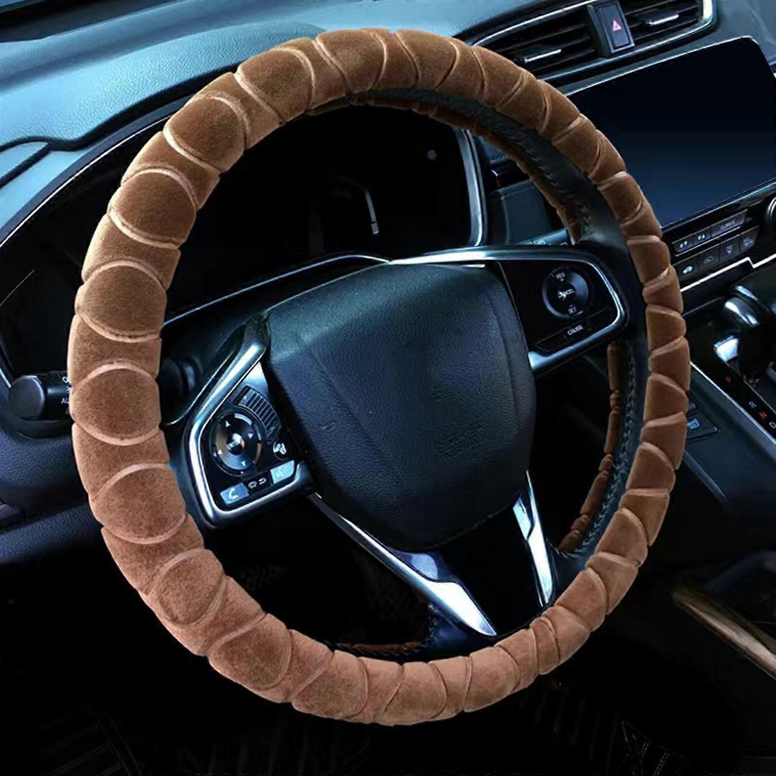 (1) Car steering wheel cover winter short plush warm steering wheel cover general type 14-15 inches Multicolor