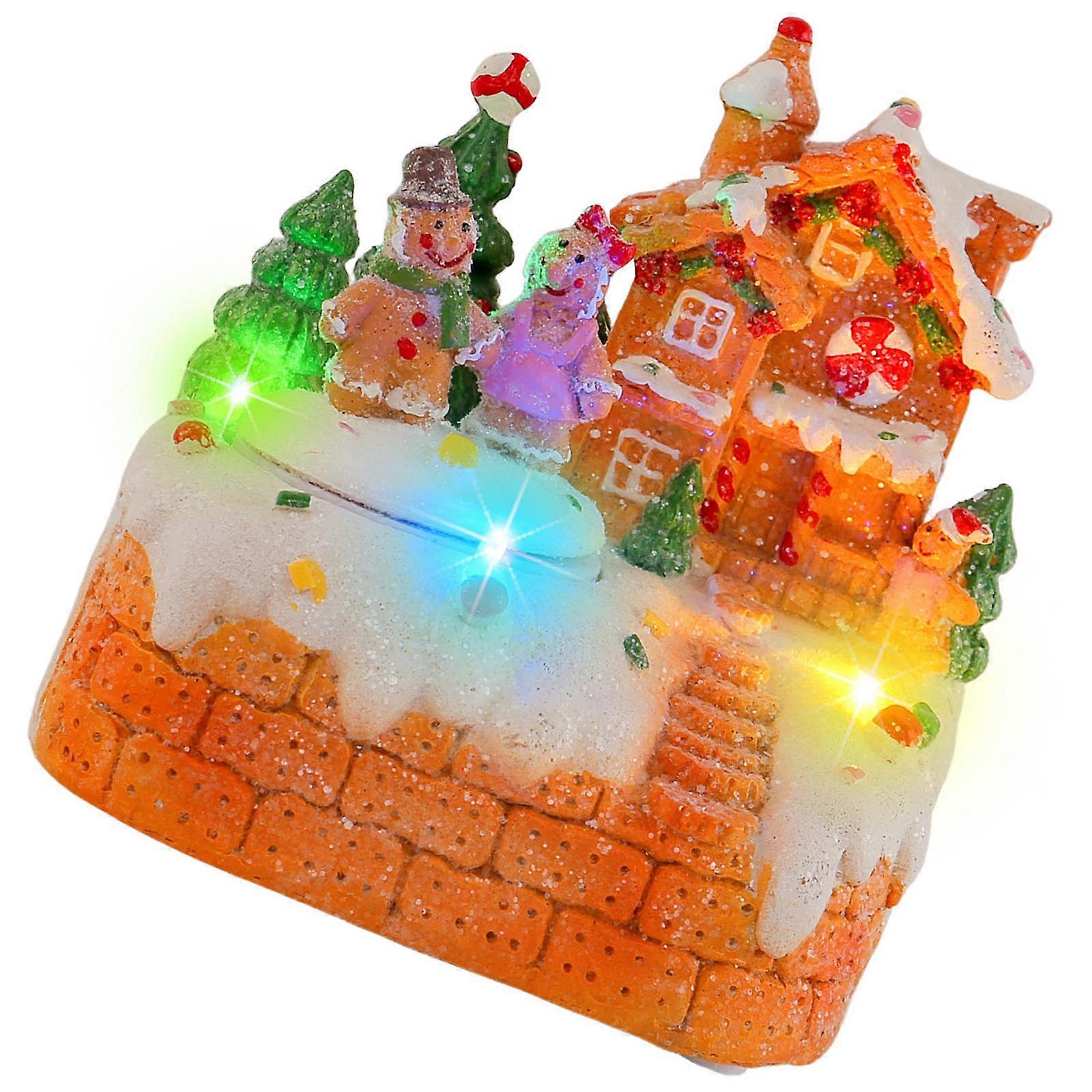 Christmas Themed Rotating Gingerbreads Man Figurine Resins Music Box with LED Light Decors Gift for Kids and Adults Multicolor