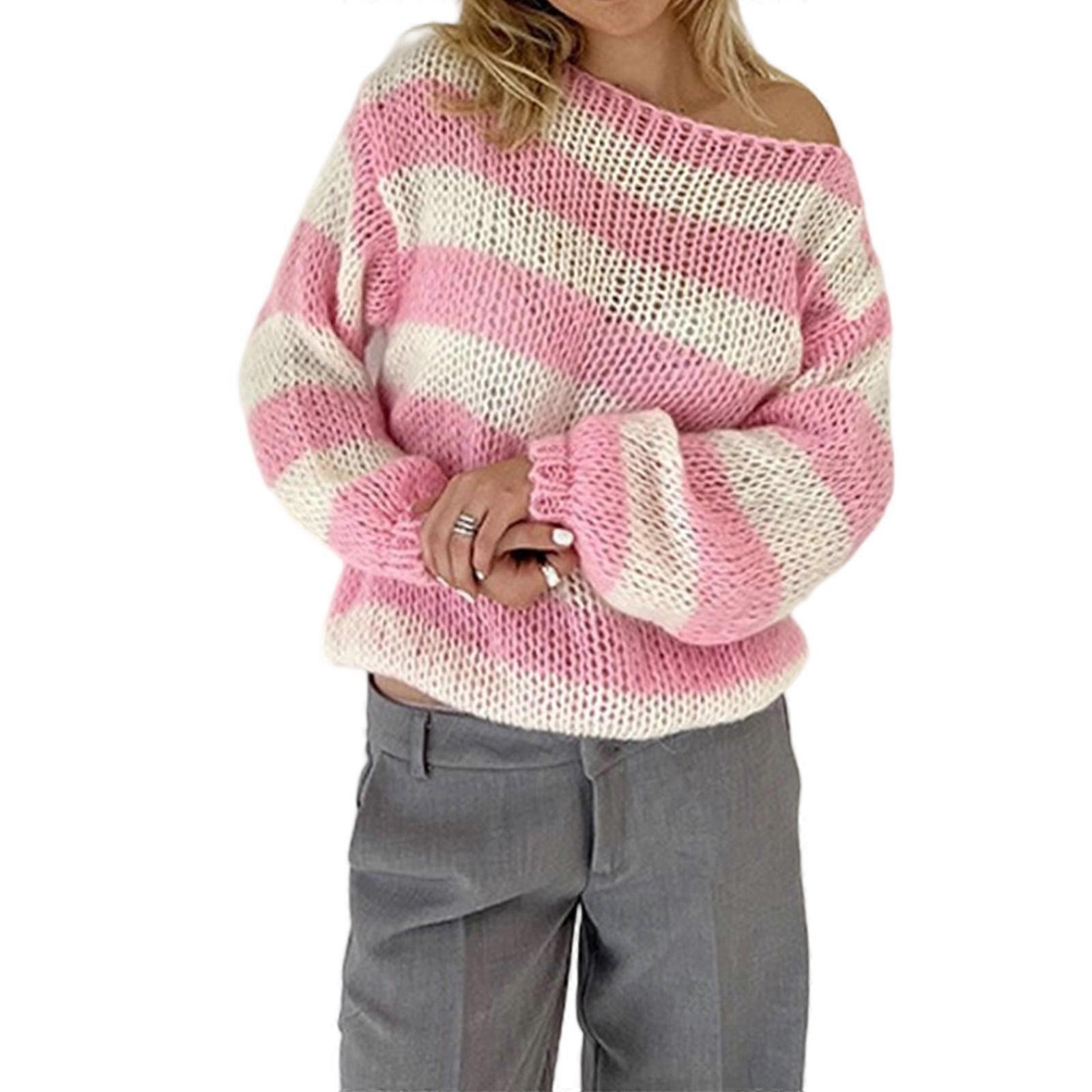 Women's Long Sleeve Knit Sweater Soft Cotton Polyester Blend Breathable Fabric Comfortable Casual Wear For Everyday Pink S