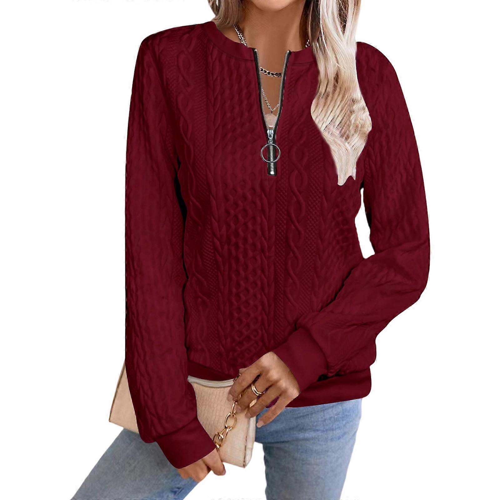Womens Oversized Sweatshirts Trendy Sweaters Fashion Hoodies Half Zip Pullover Tops Long Sleeve Shirts Fall Clothes XL Claret