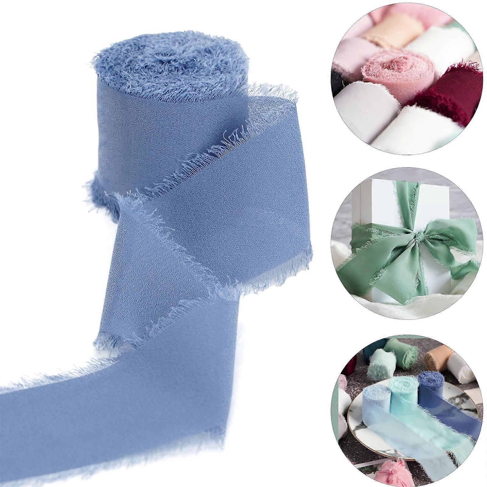 Seewan 3 Rolls Chiffon Silk Ribbon, 1.5"x5yd Fringe Fabric, Eco-Friendly for Wedding Invites, Bouquets, Decor, Gift Wrapping & Bows