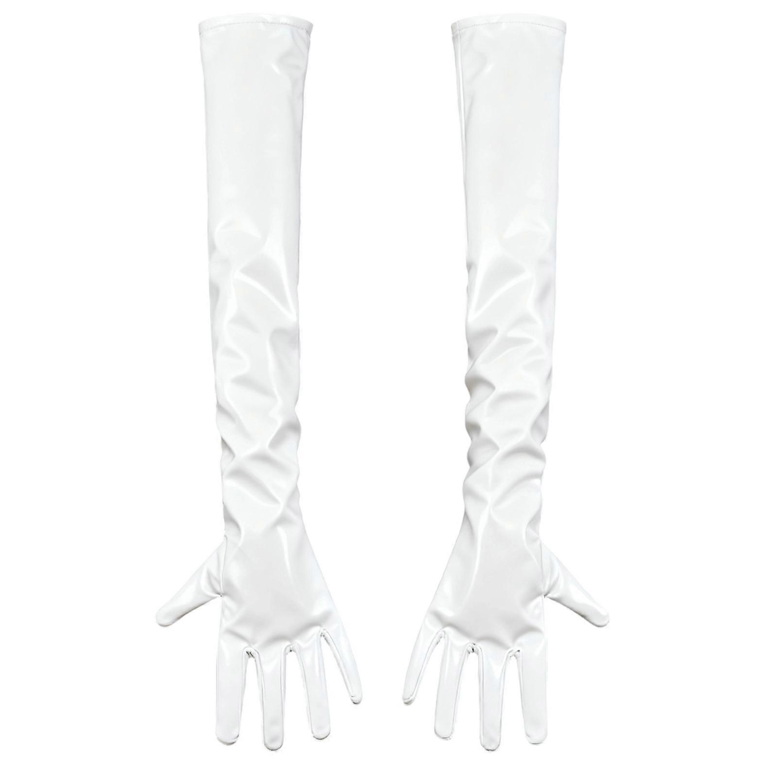 Lightweight PU Leather Gloves With Reinforced Fingertips Flexible Movement Halloween Accessory for Evening Role Play White XL