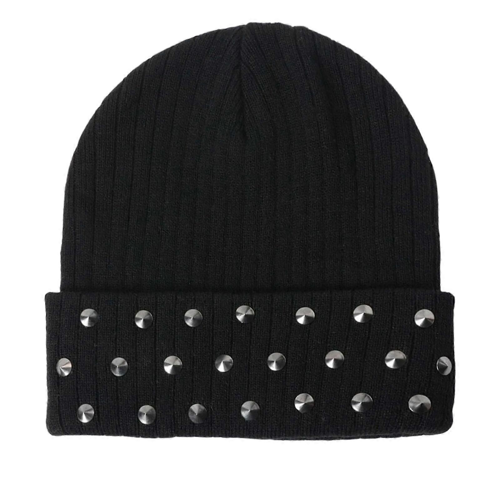 Breathable Skull Cap With Rivet Decors Trendy Unisex Beanies Solid Color Outdoor Hats For Outdoor Daily Use Black