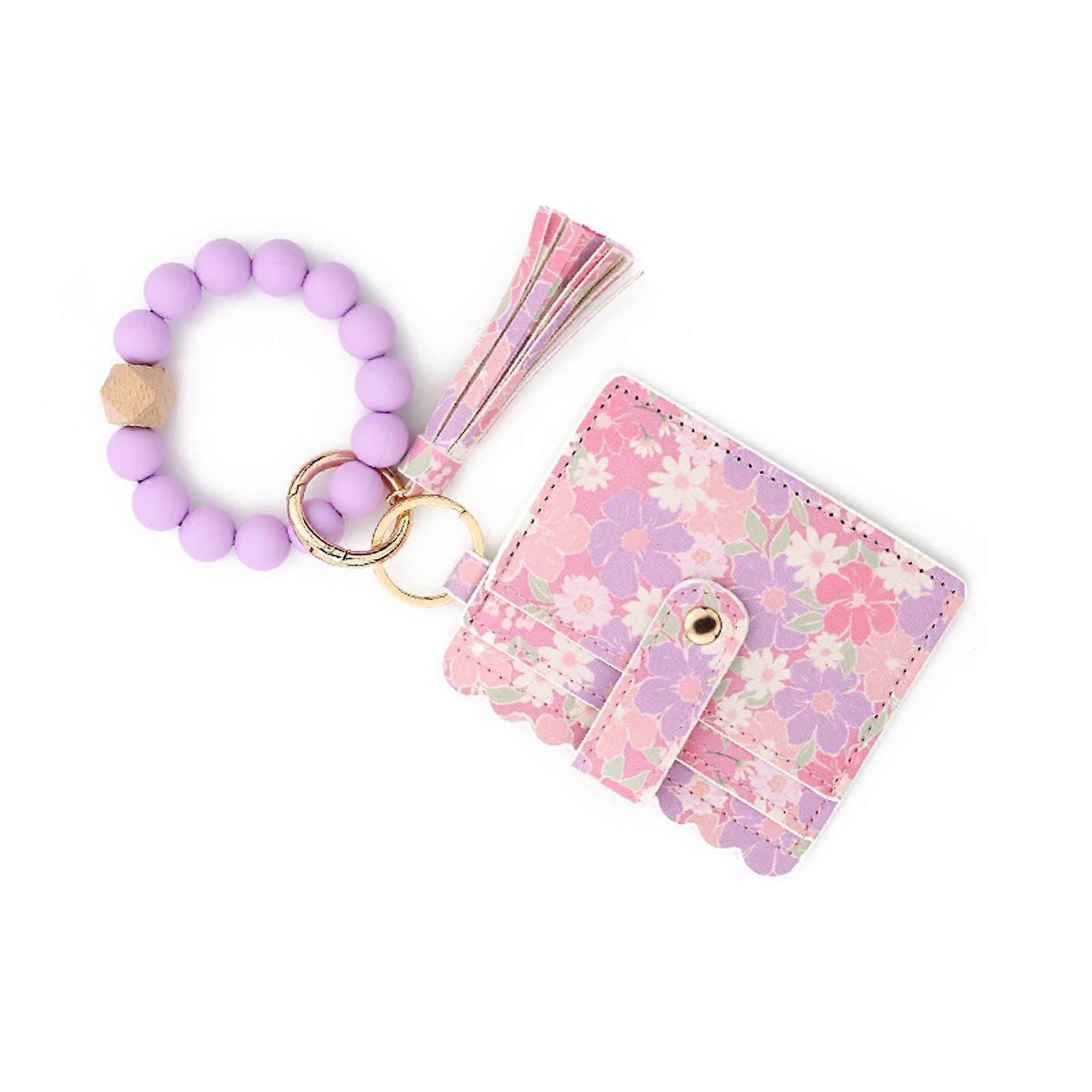 Wallet Keychain Wristlet for Women,Slim Credit Card Holder Purses Bangle Tassels Keychain Key Rings for Men Women Gift Purple