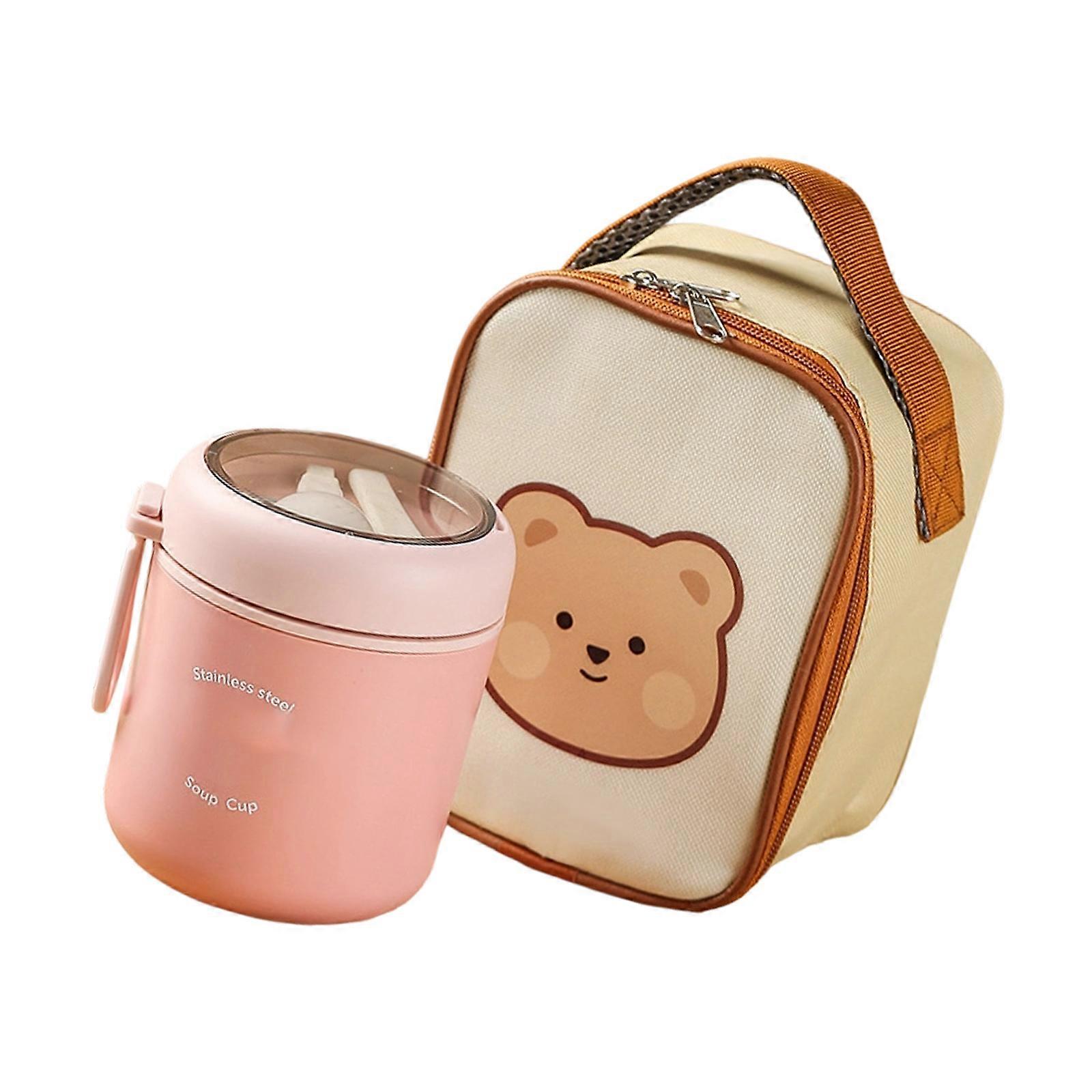 Insulated Nonrust Steel Breakfast Cup And Carry Bag Leak Proof Design Includes Spoon For Hot Drink Outdoors Pink