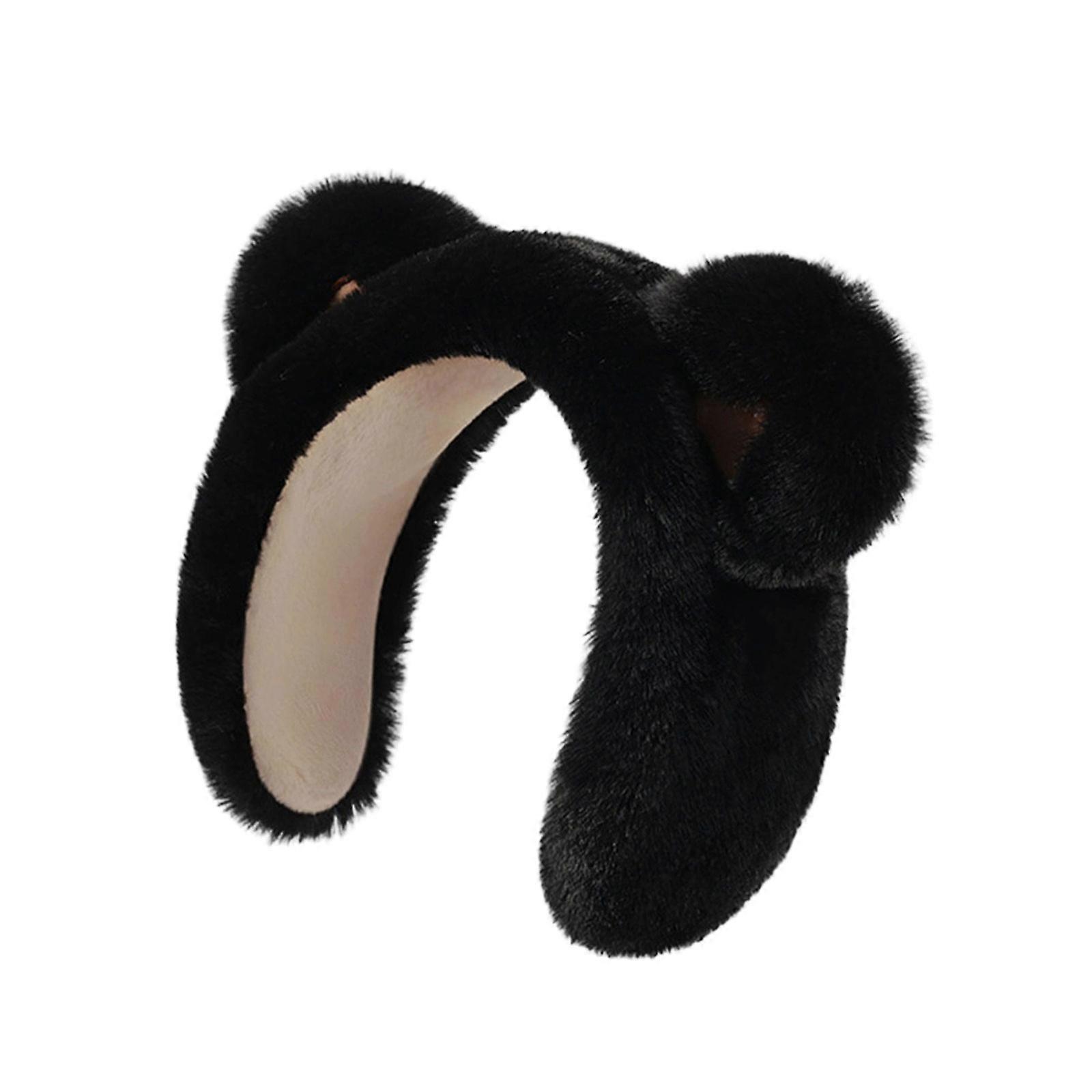 Stylish Cartoon Ear Warmer for Women, Foldable Headband, Soft Plush Lining, Adjustable Size For Girls Black