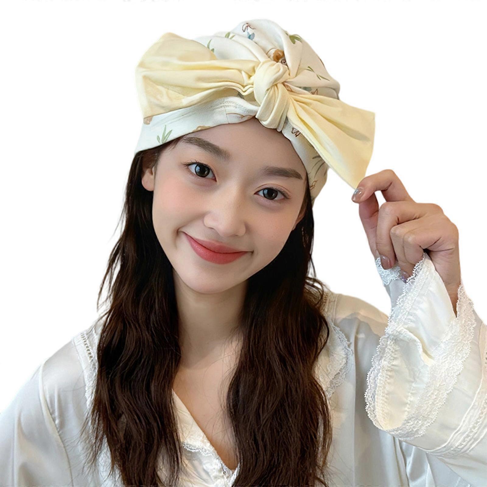 Comfortable Stretchy Maternity Head Cover Cotton Hat with BowKnot Decors Portable Head Protective Nursing Hat for Warmth Yellow