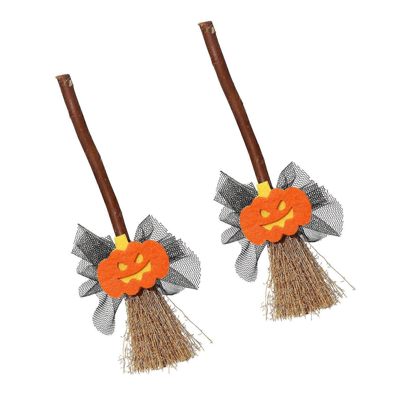 Halloween Decorations Small Witch Broom Pendant Wooden Witches Brooms Hanging Decorations Wooden Broomstick Ornament Multicolor