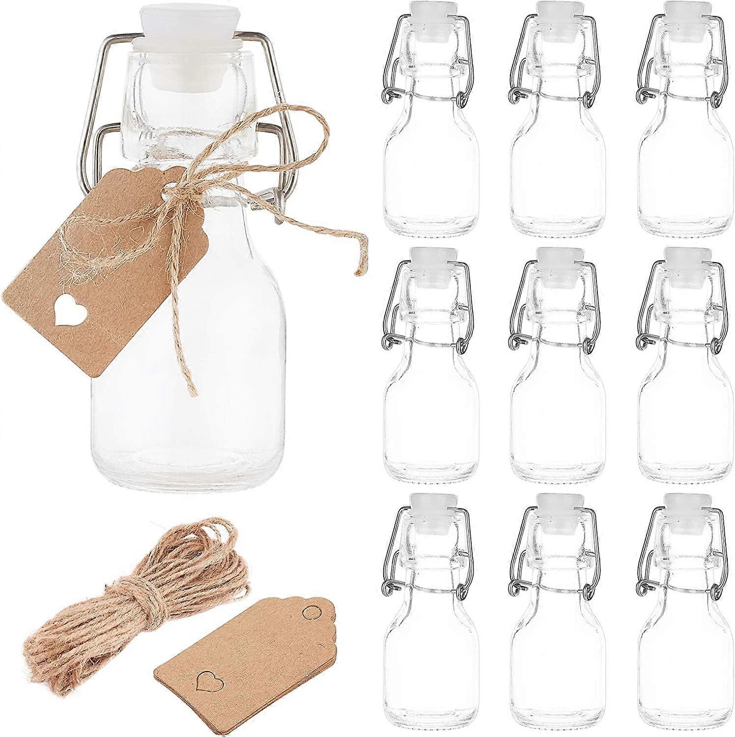 12 Pack 2oz (60ml) Mini Swing Top Glass Bottles with 20pcs Hang Tags and 1 Bundle Hemp Cord for Wedding Party Favors Décor