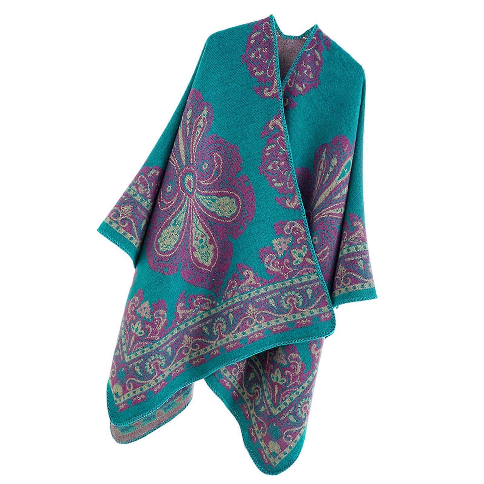 Lightweight Warm Ethnic Design Long Shawl Scarf Wrap Thickened Winter Wear For Women Men Home Outdoor Peacock Blue
