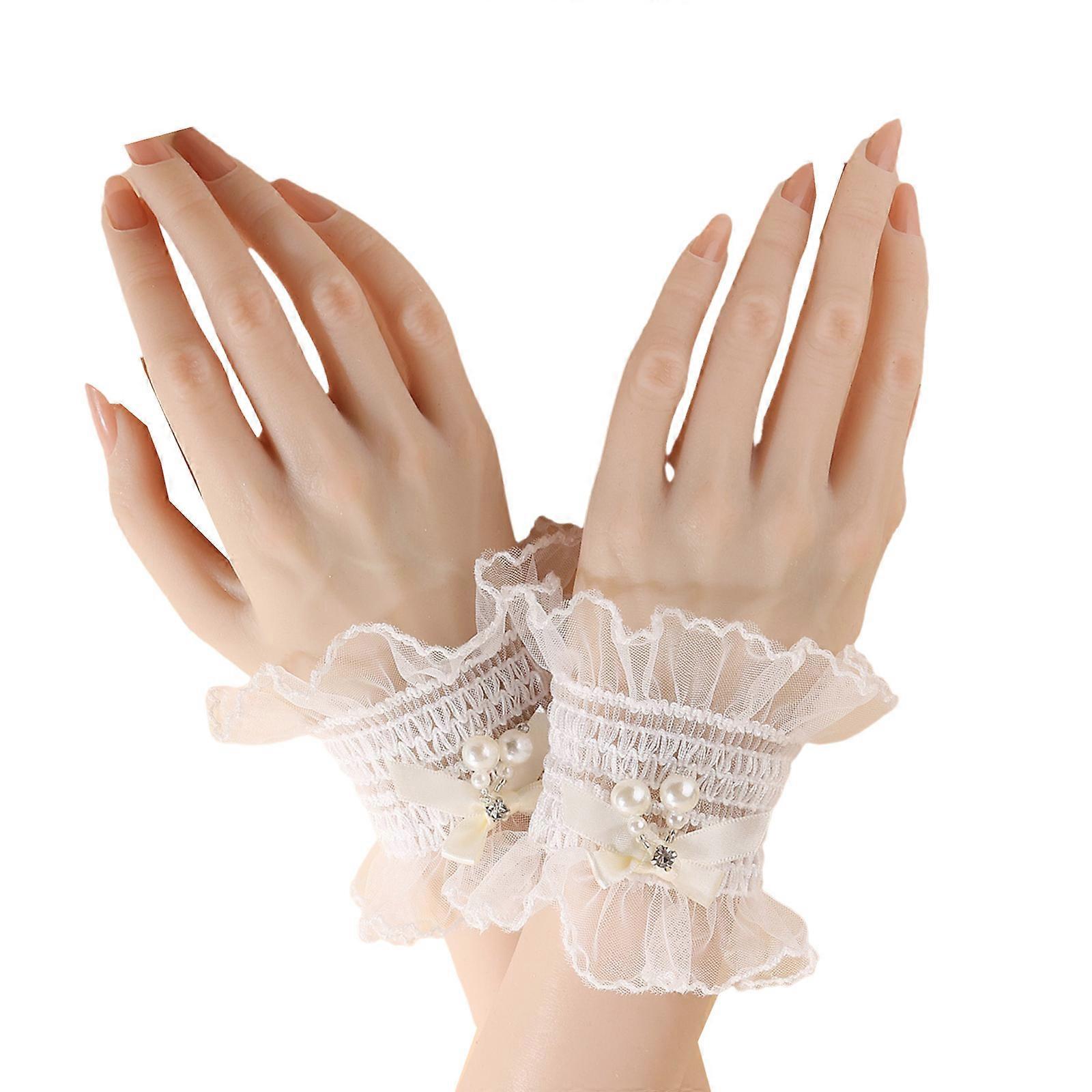 Delicate Lace Wrist Accessories Easy To Wear Ruffled Floral Lace Wrist Cuffs For Women's Parties Weddings White