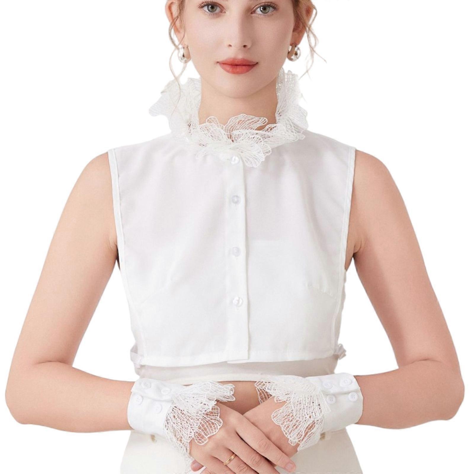 Elegant Lace Trim Detachable Collar And Arm Sleeves For Formal Event Breathable Fabric Neckwear Fashion Outfit Accessory White collar suit