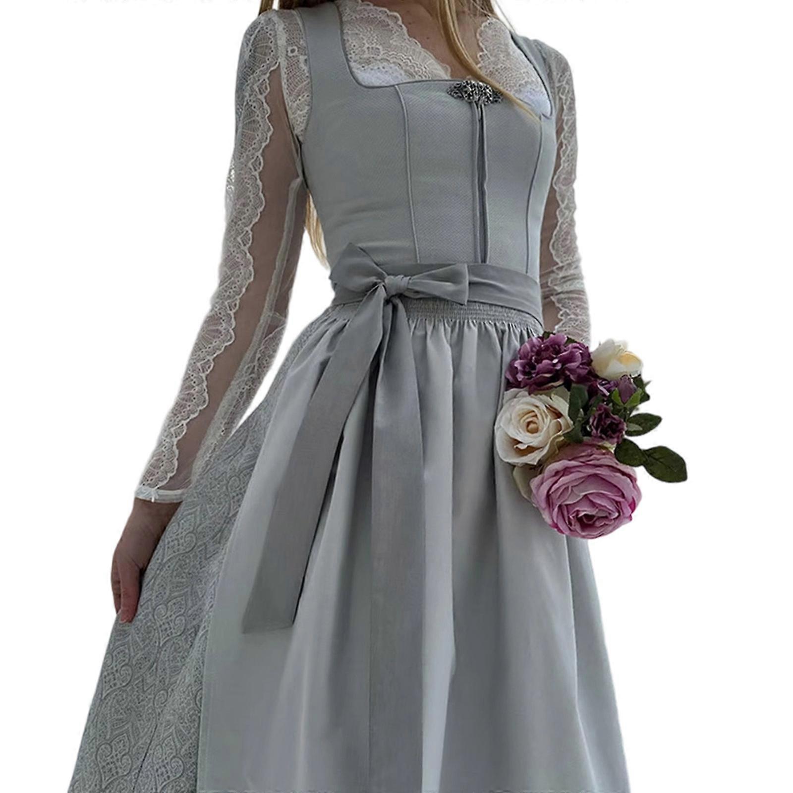 Oktoberfest Costumes for Women Beer Festival Outfits German Oktoberfest Dirndl Dresses for Halloween Beer Carnival Party Silver XL